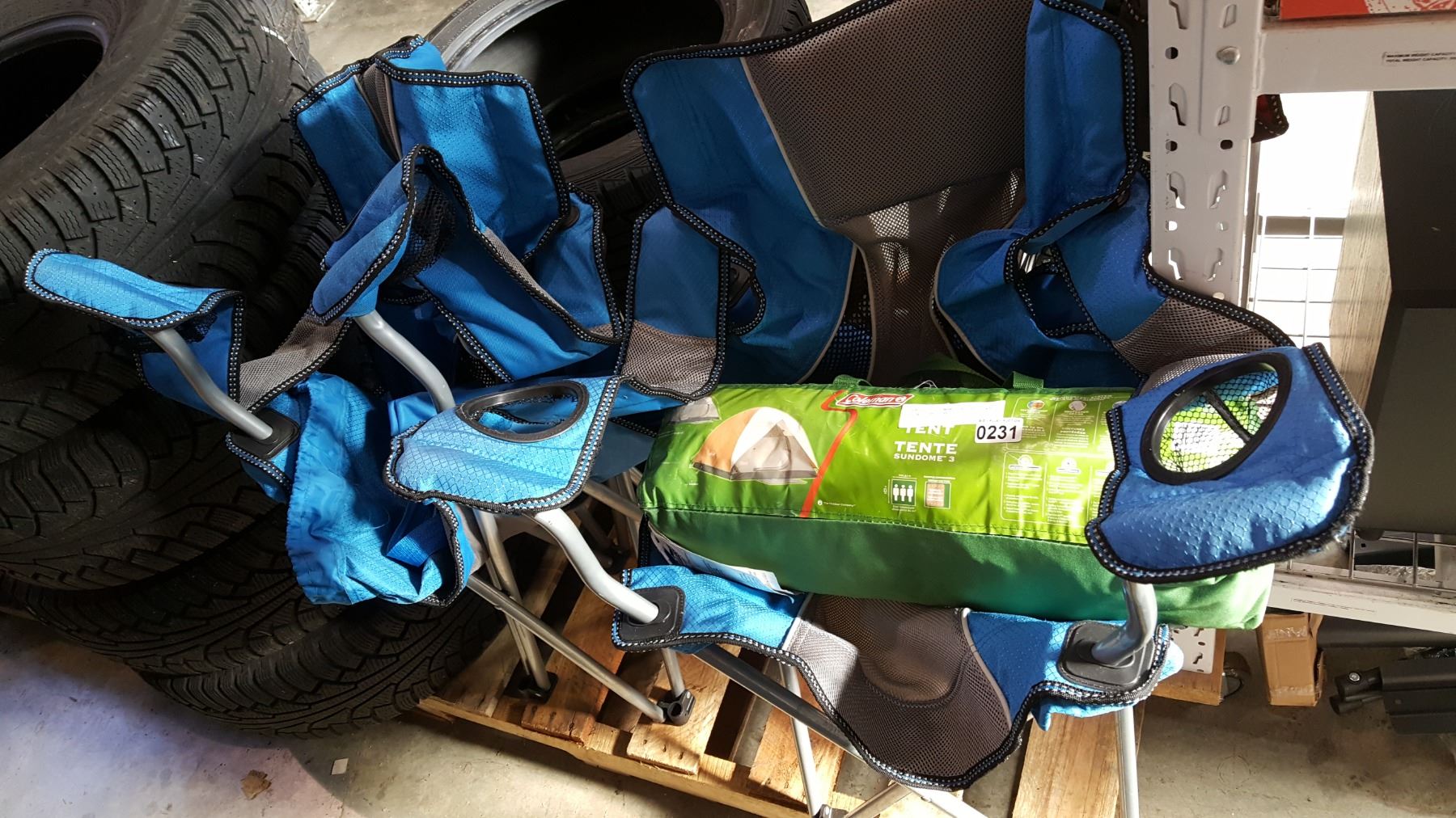 COLEMAN THREE MAN TENT AND TWO FOLDING CAMP CHAIRS