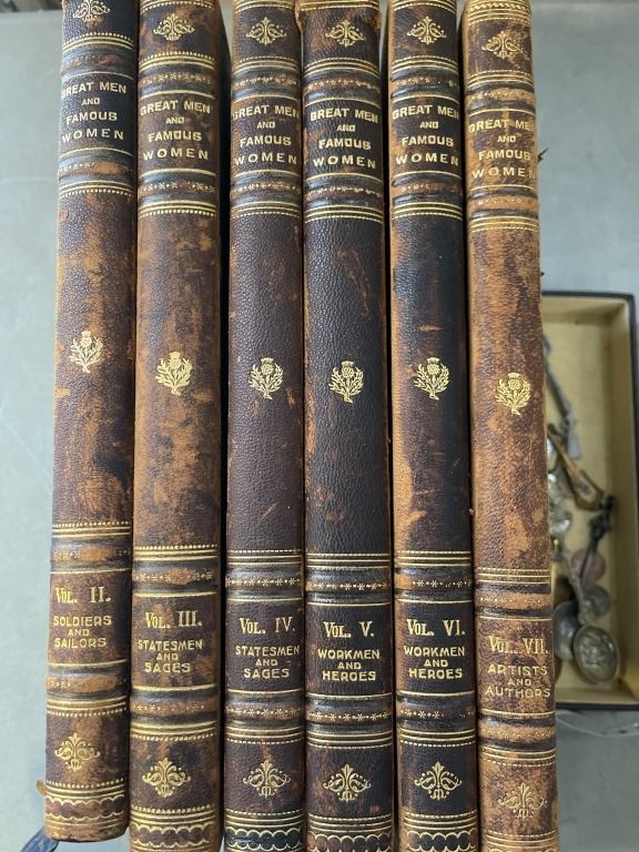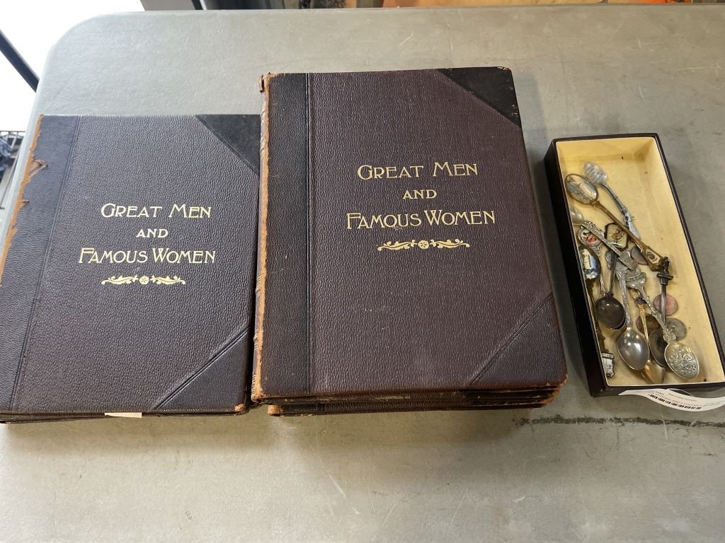 COLLECTER SPOONS AND 6 VOLUMES OF GREAT MEN AND FAMOUS WOMEN