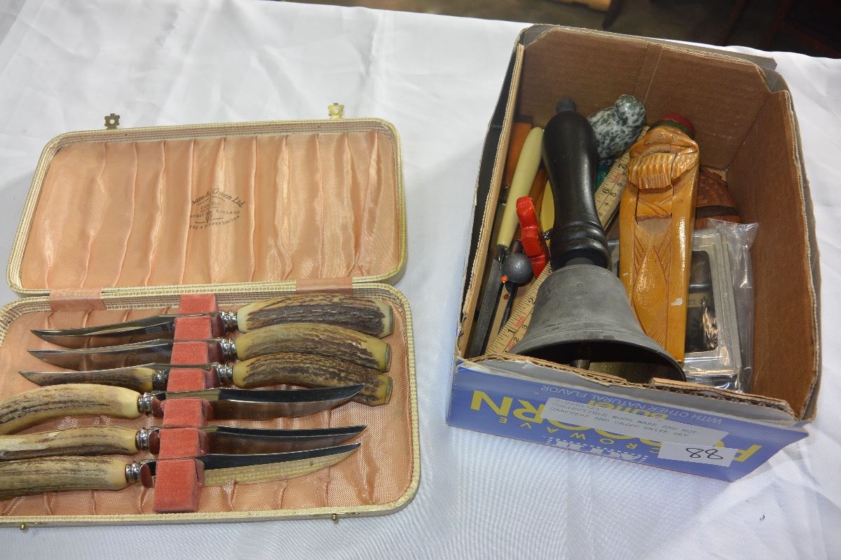 COLLECTIBLE WOOD WARE AND NUT CRACKERS AND CASED KNIFE SET