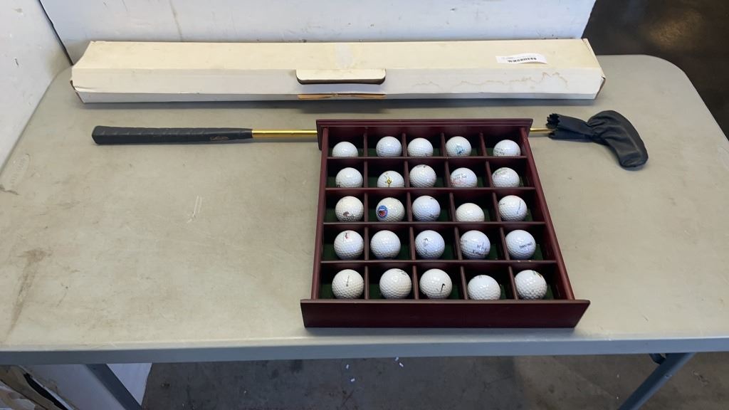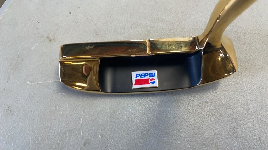 COLLECTION OF GOLF BALLS AND 24 K GOLD PLATED PEPSI LEFT HANDED PUTTER