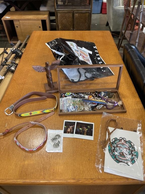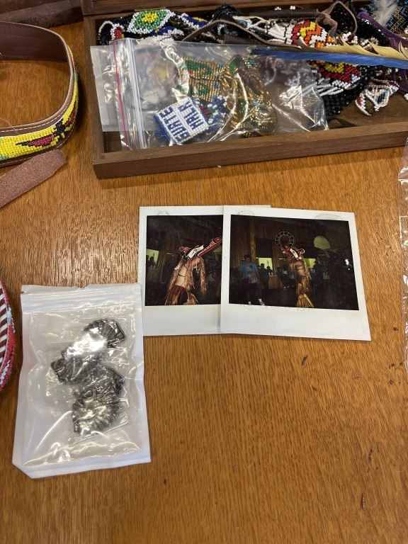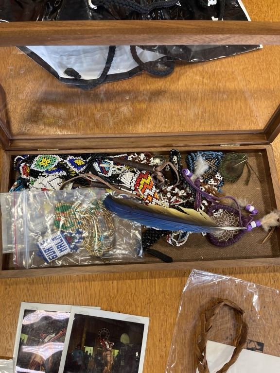 COLLECTION OF NATIVE BEADWORK, PICTURES AND JEWELRY