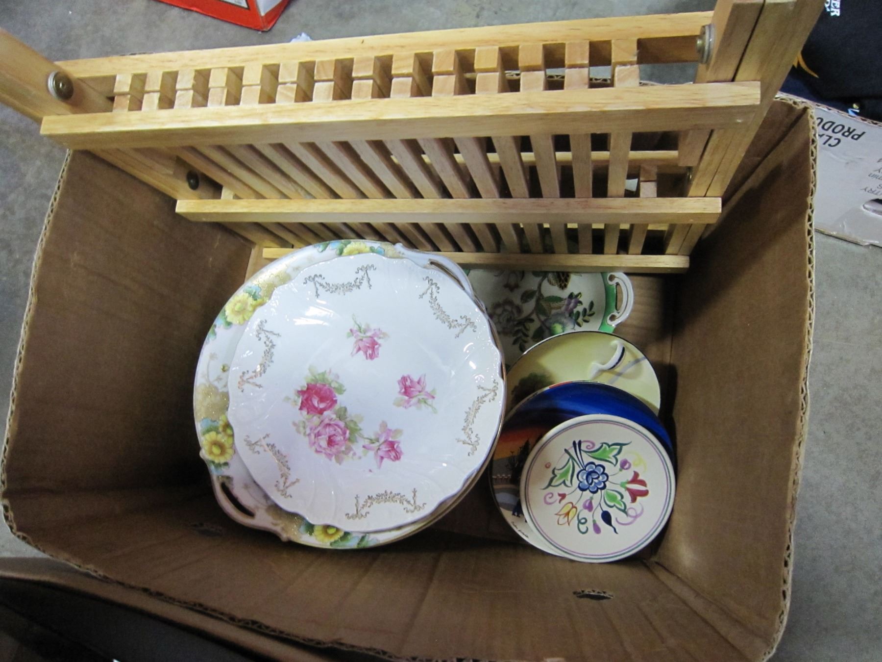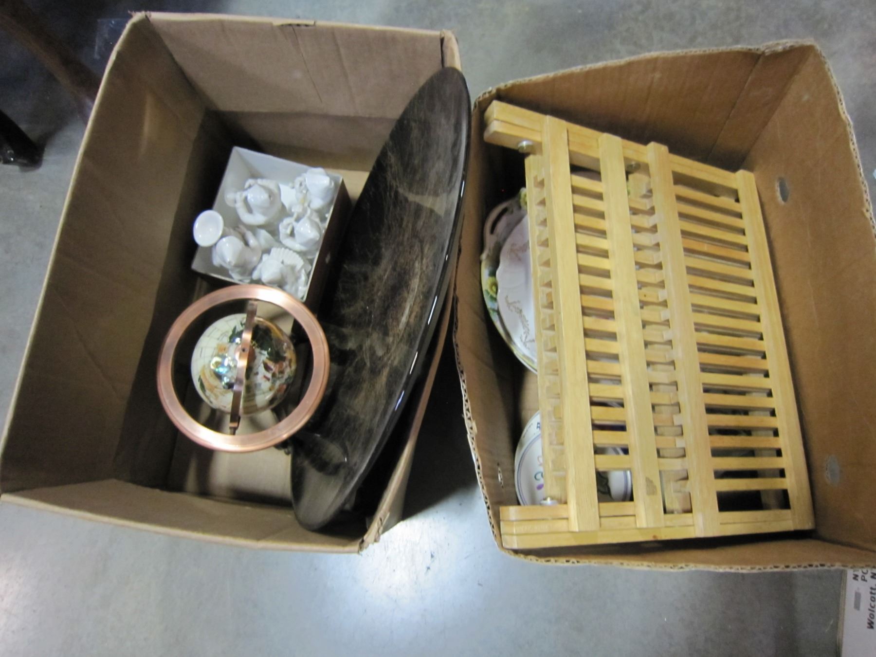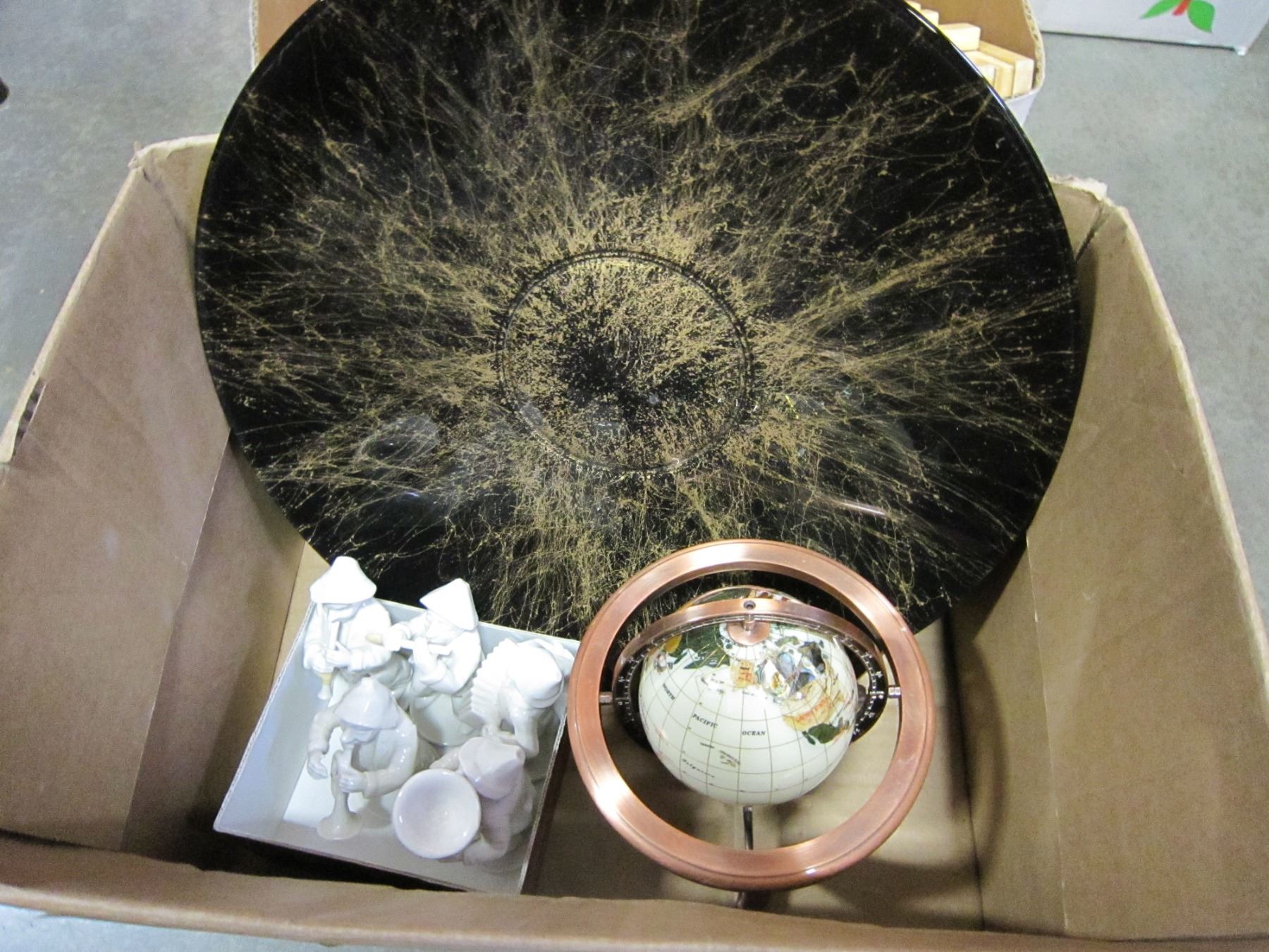 COLLECTOR PLATES AND STAND, GERMAN FIGURES, STONE GLOBE, AND DECORATIVE PLATE