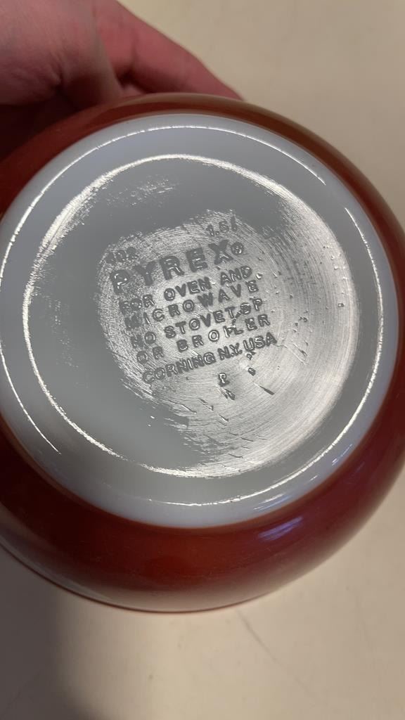 COLORED PYREX BOWLS AND FIRE KING MIXING BOWL
