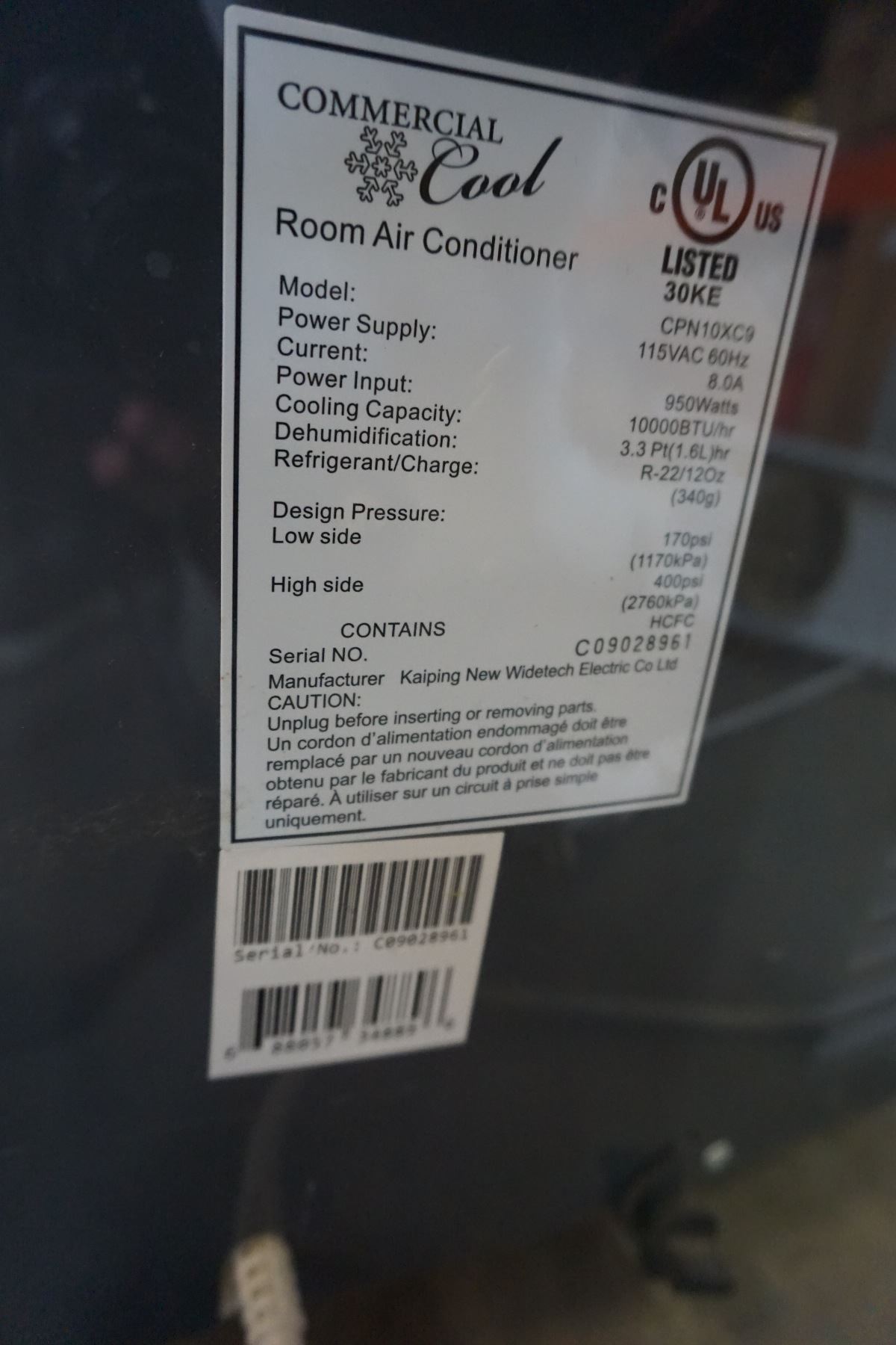 COMMERCIAL COOL PORTABLE AIR CONDITIONER W/ REMOTE