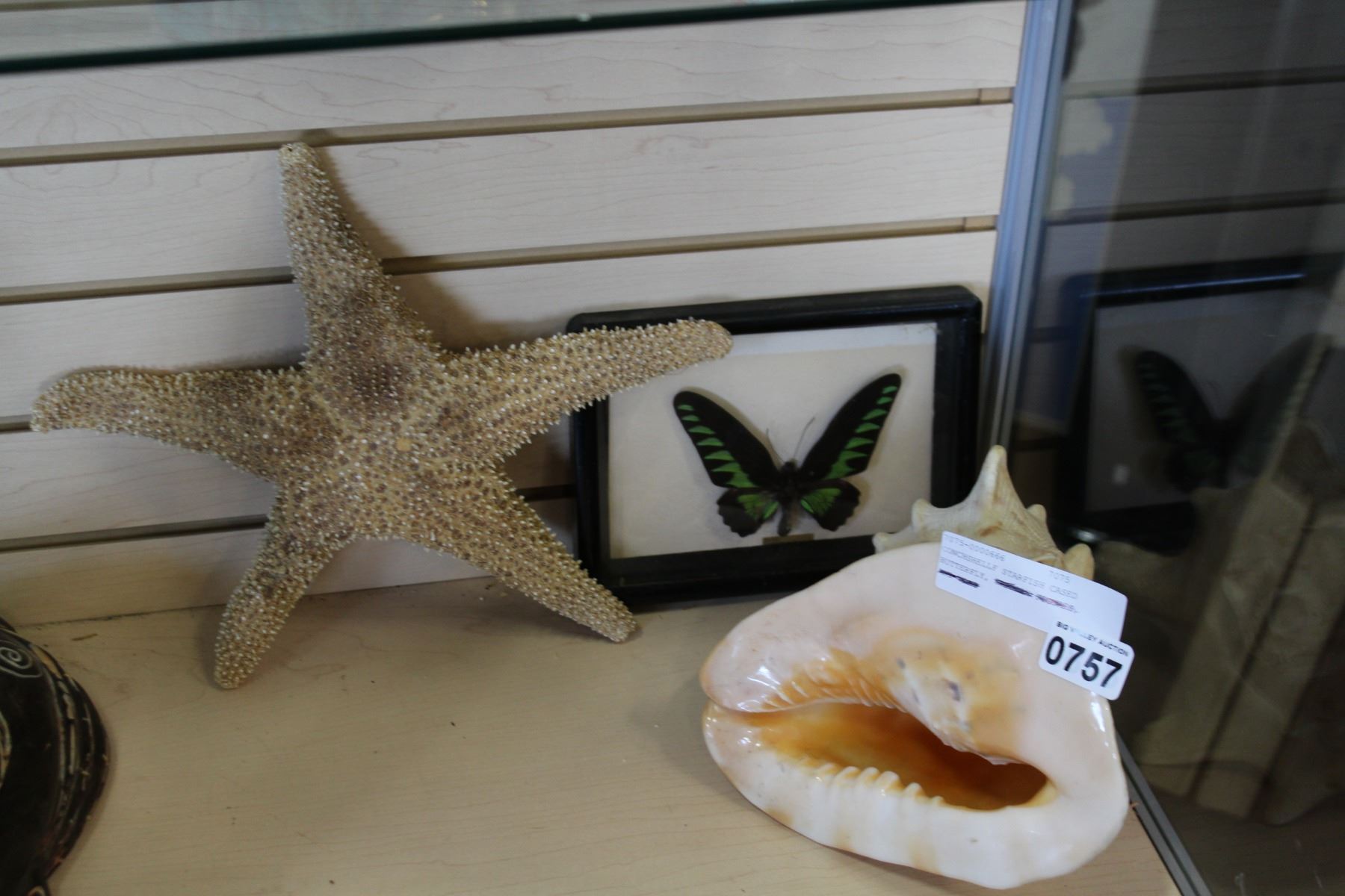 CONCHSHELL STARFISH AND CASED BUTTERFLY