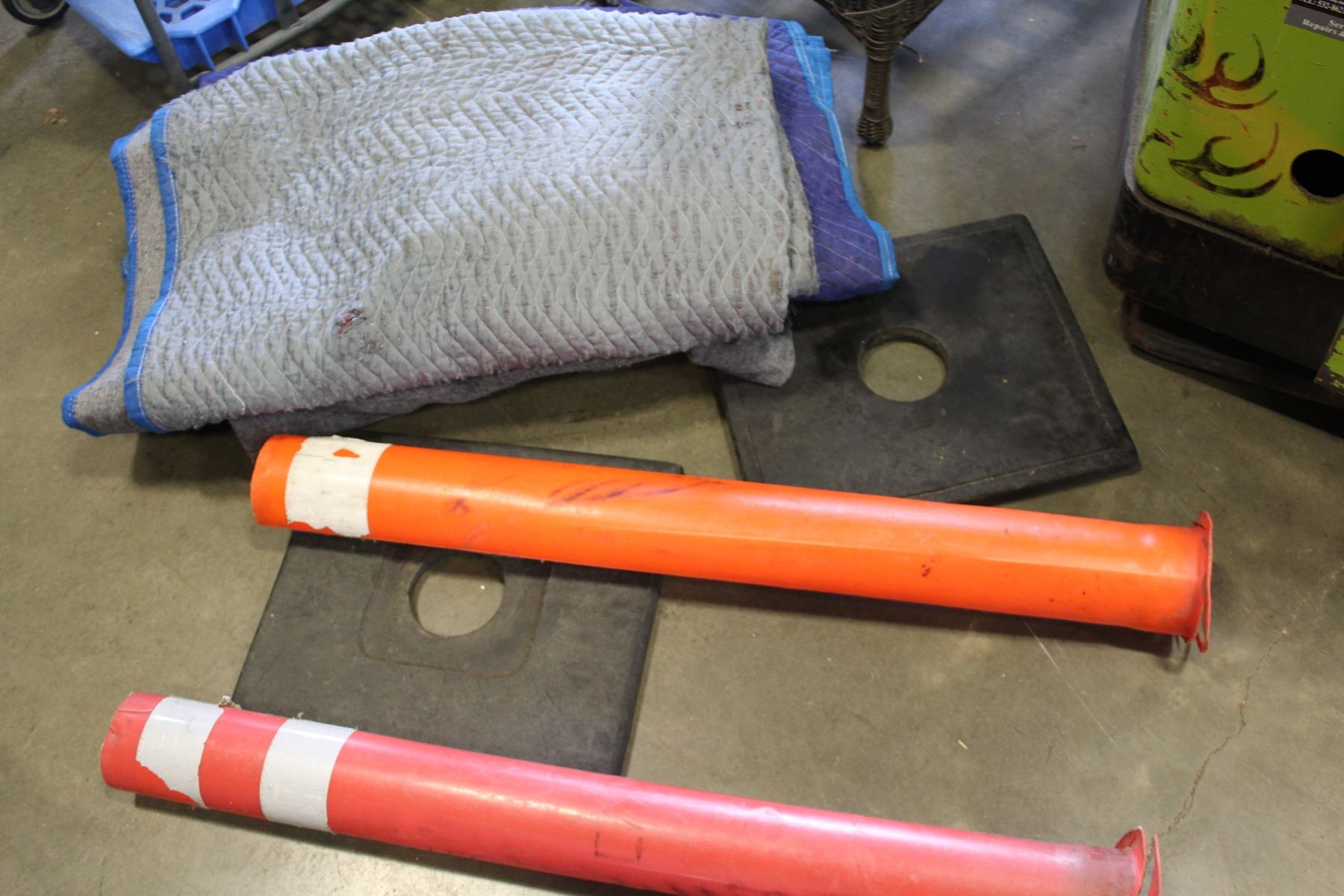 CONSTRUCTION CONES AND MOVING BLANKETS AND 2 TOTES