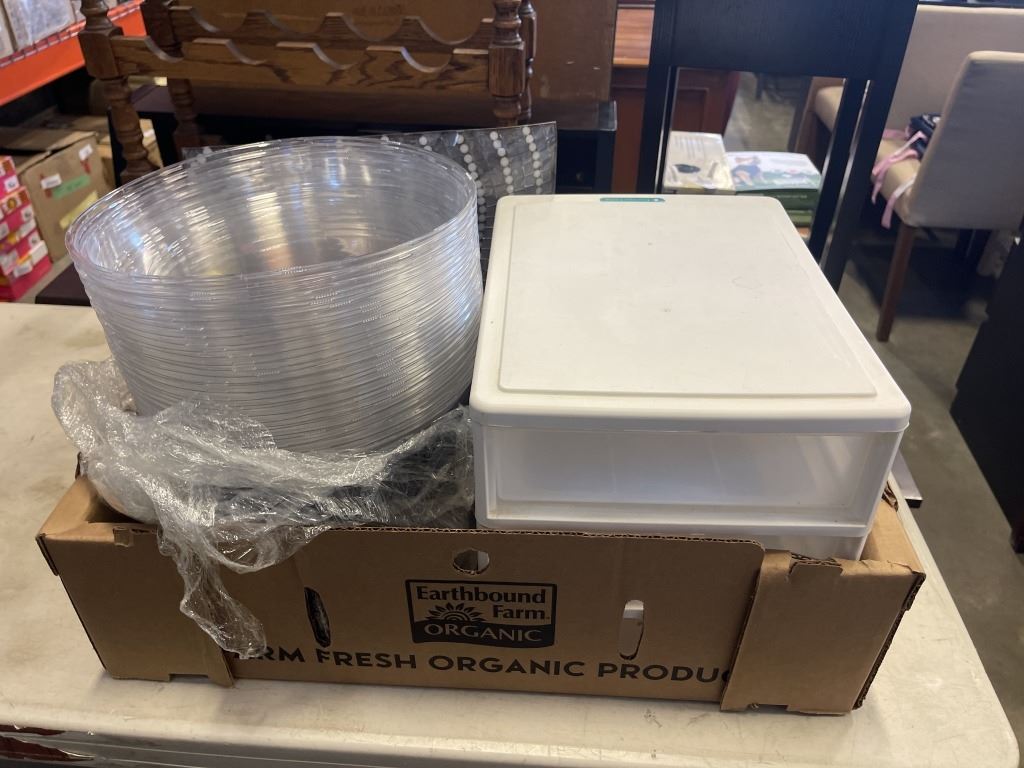 CONTAINERS WITH LIDS, PLASTIC ORGANIZER AND DEDCORATIVE PLATE