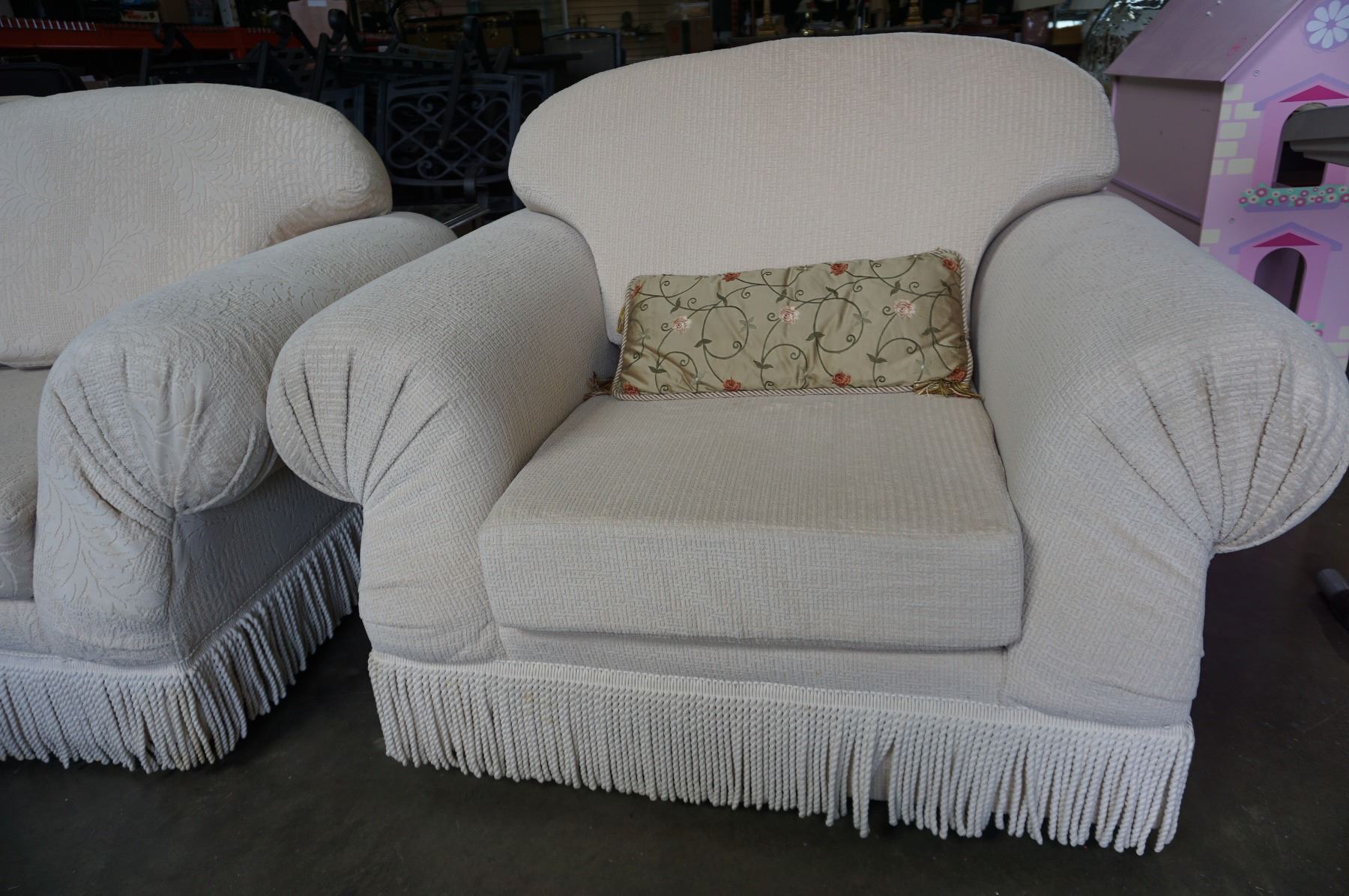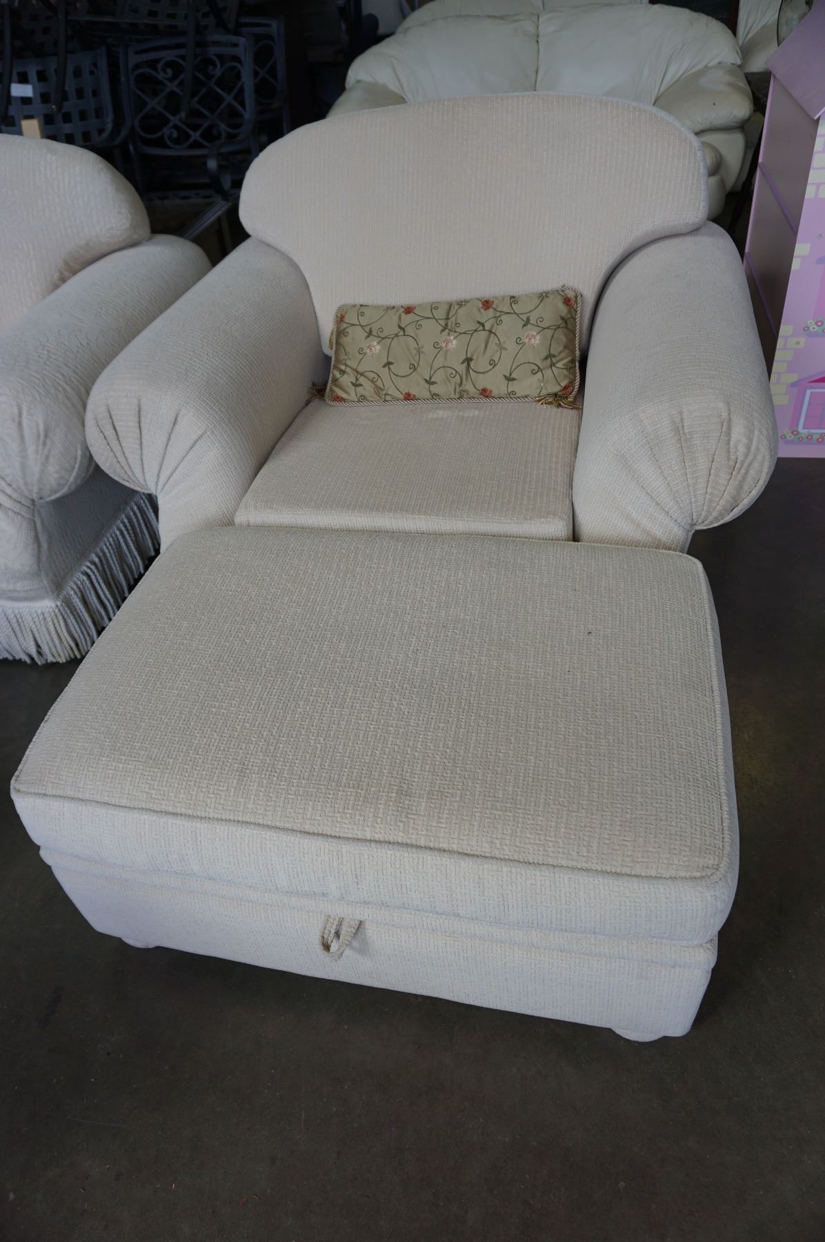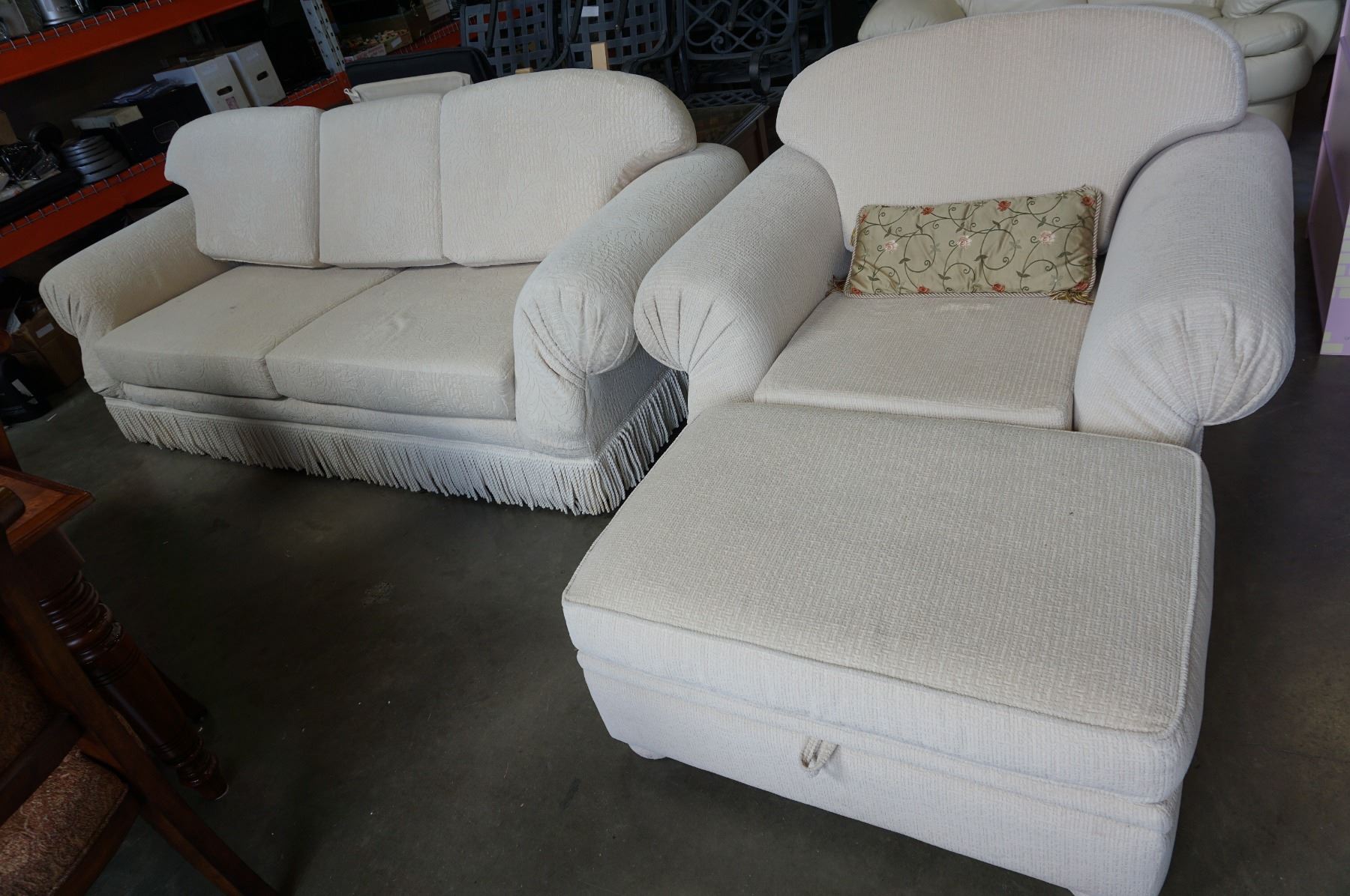 CONTEMPORARY SKYLAR PEPPLER ROLLED ARM SOFA, CHAIR, AND OTTOMAN