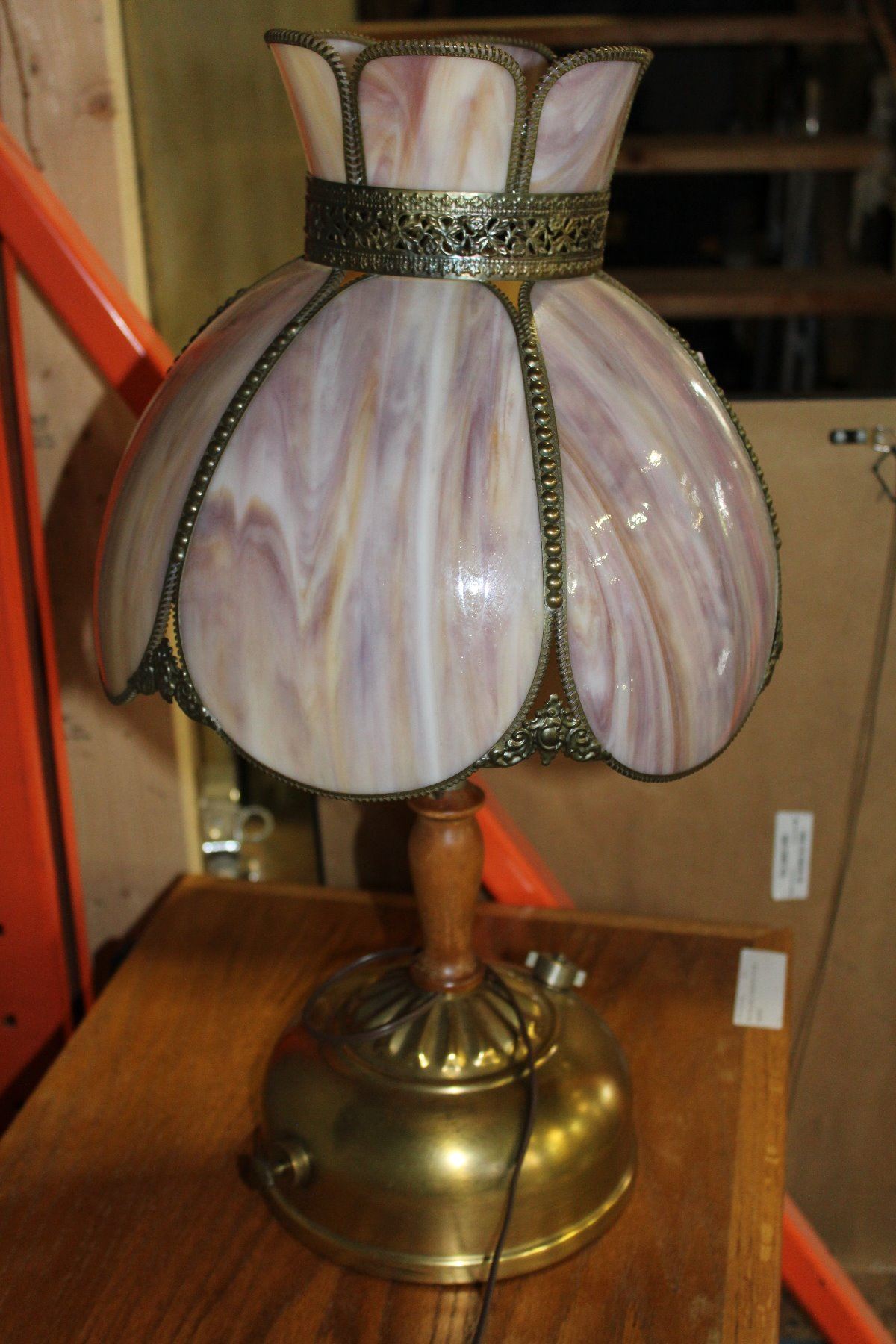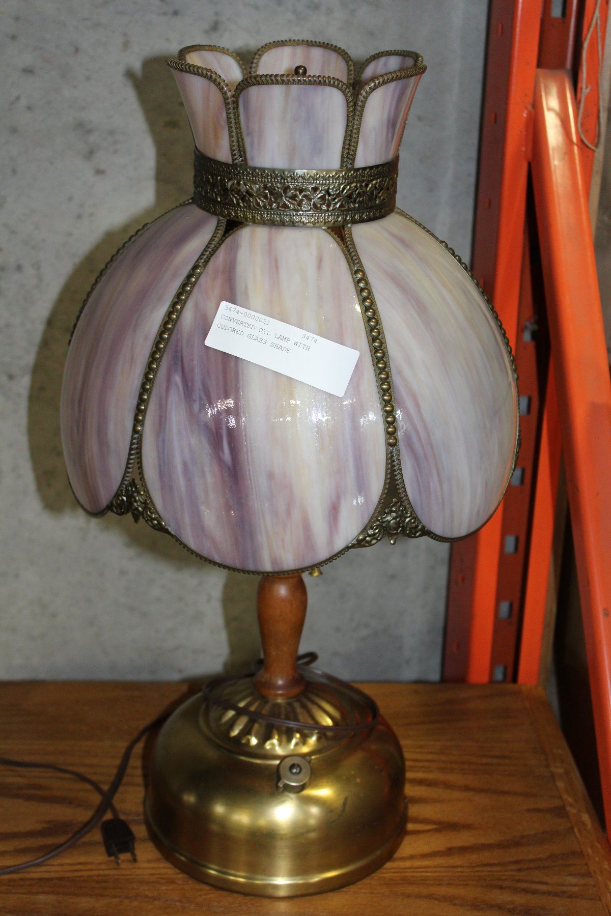 CONVERTED OIL LAMP WITH COLORED GLASS SHADE