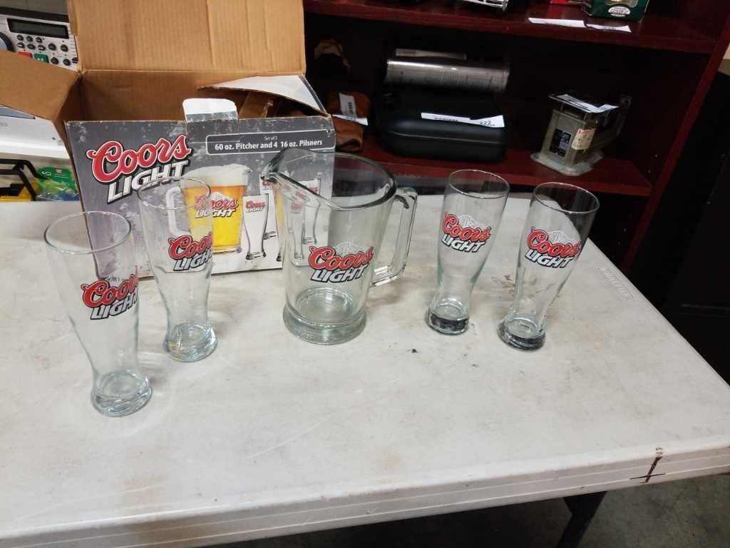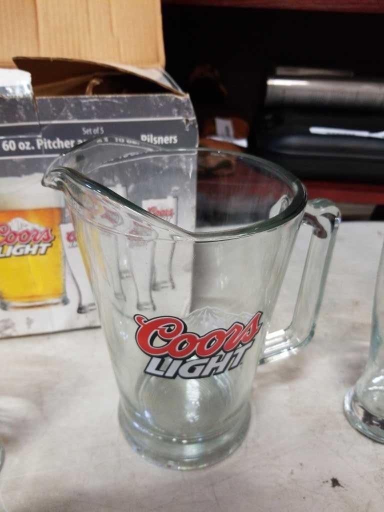 COORS LIGHT PITCHER AND FOUR 16oz PILSNERS