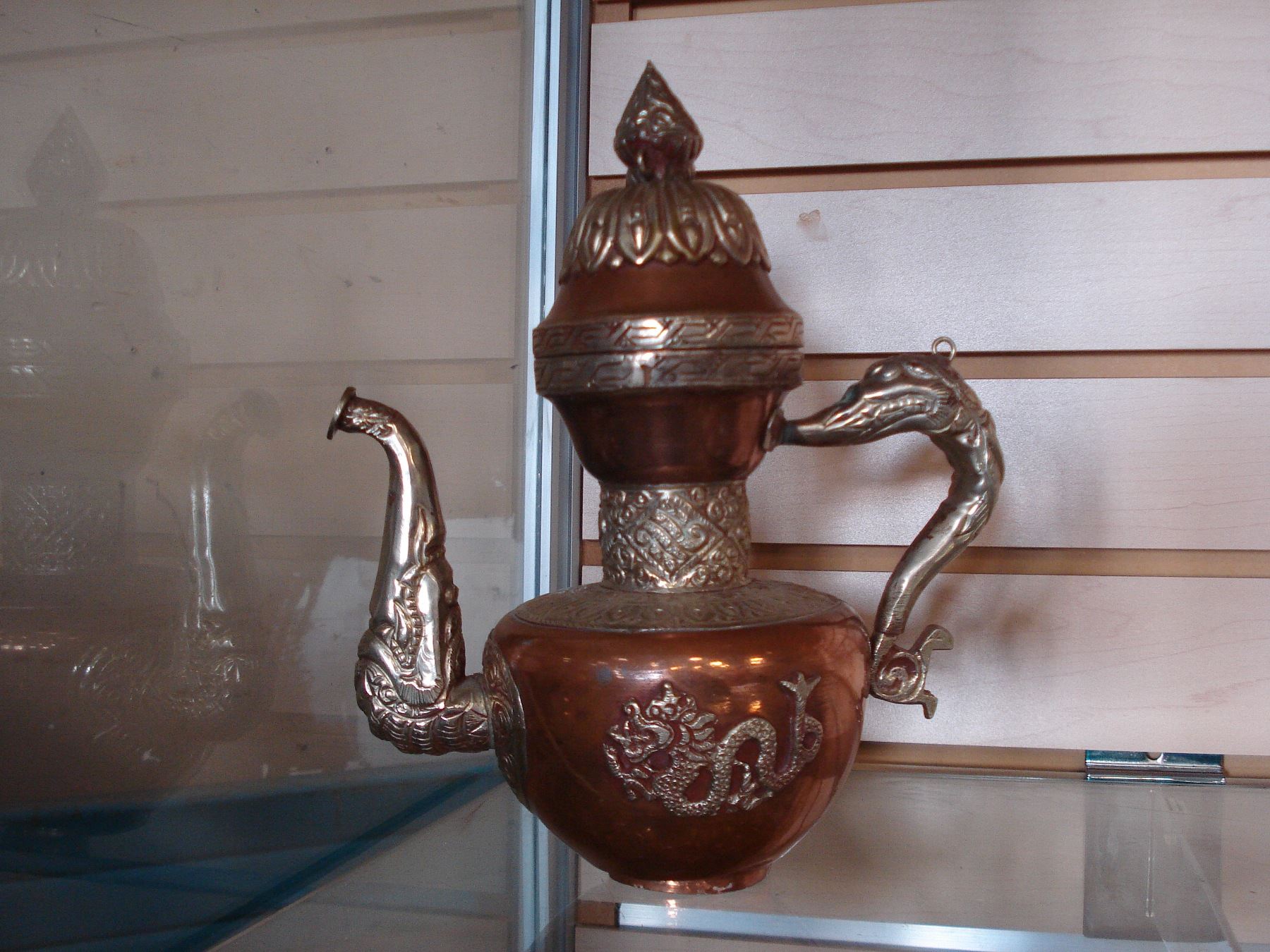 COPPER AND SILVER INLAY ANTIQUE DRAGON TEA POT