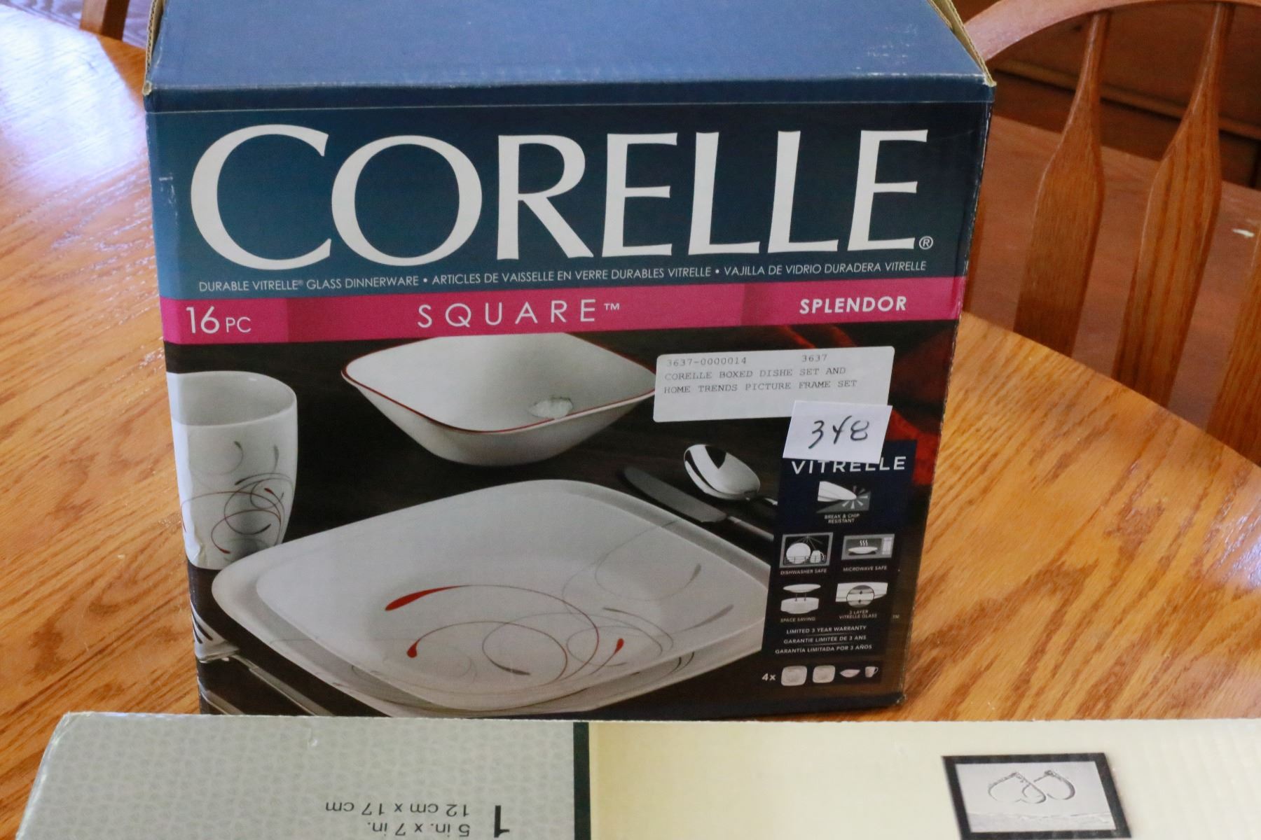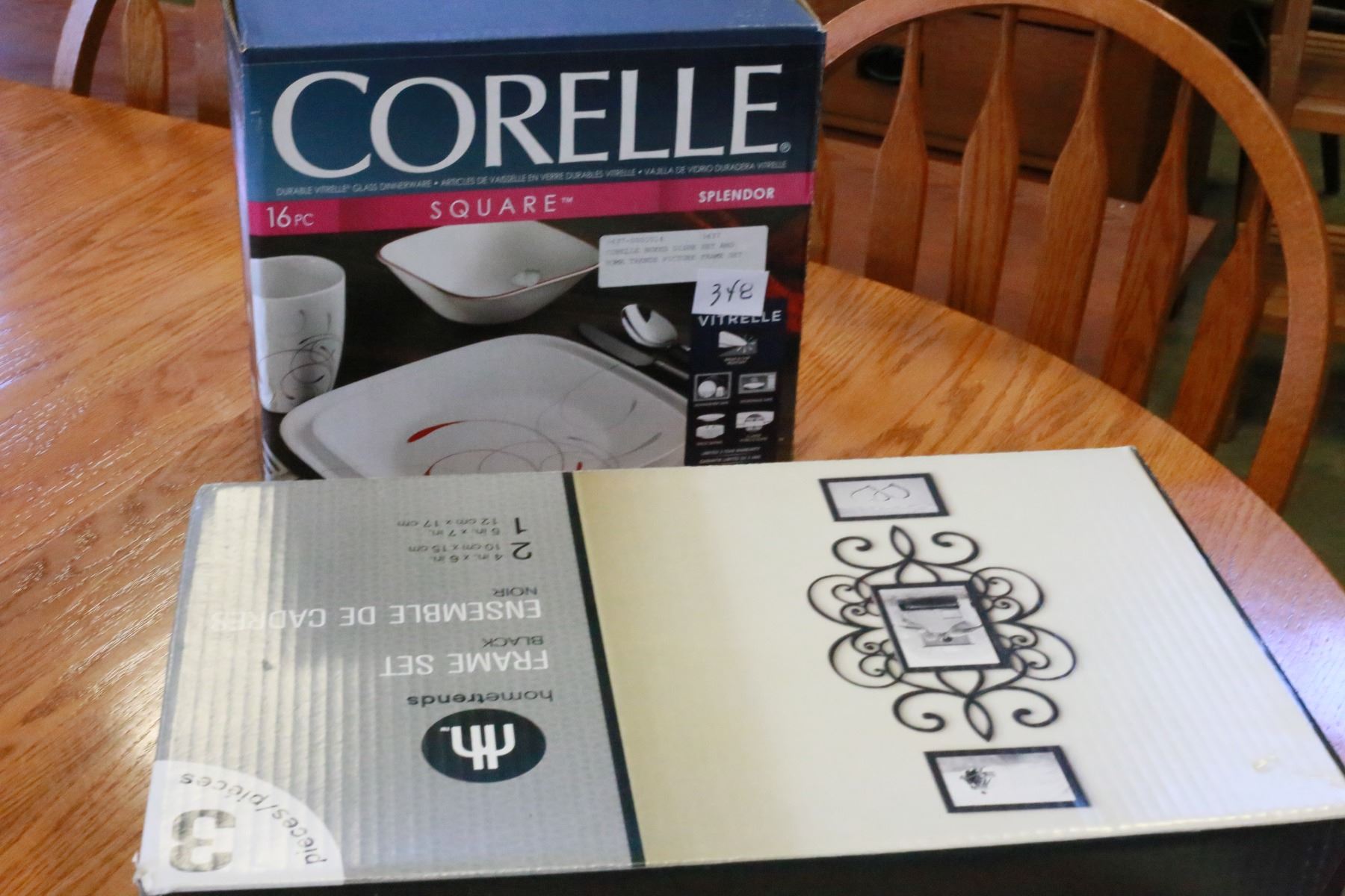 CORELLE BOXED DISHE SET AND HOME TRENDS PICTURE FRAME SET