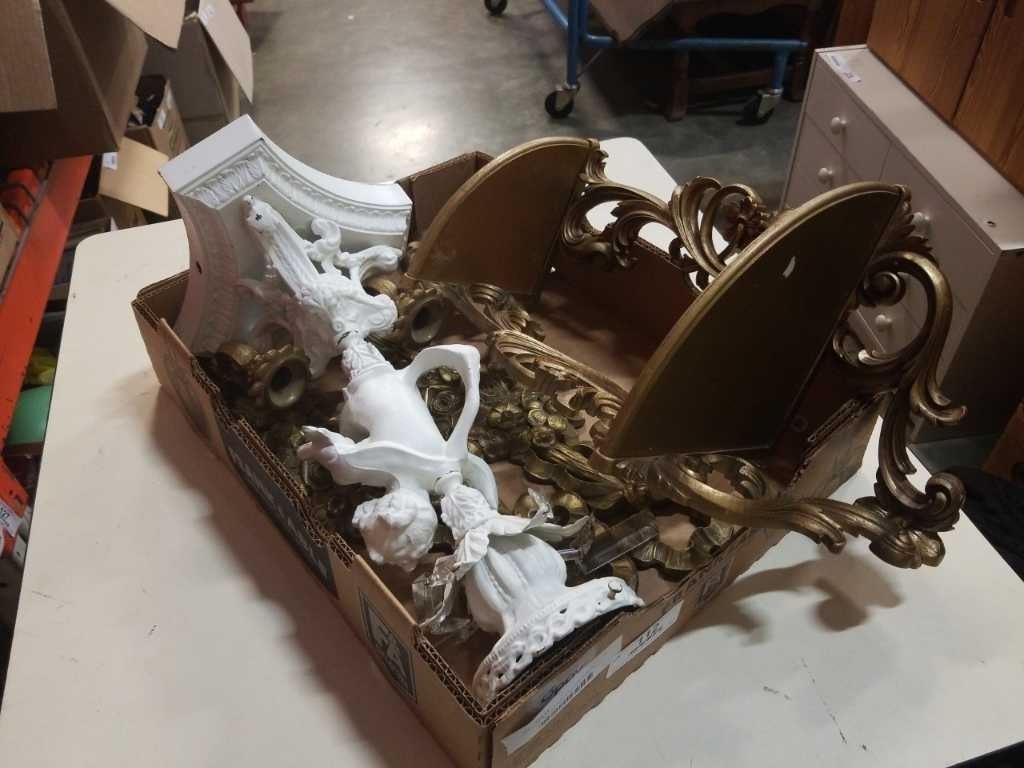 CORNER SHELF AND 2 SYROCO WALL SCONCE CANDLE HOLDERS