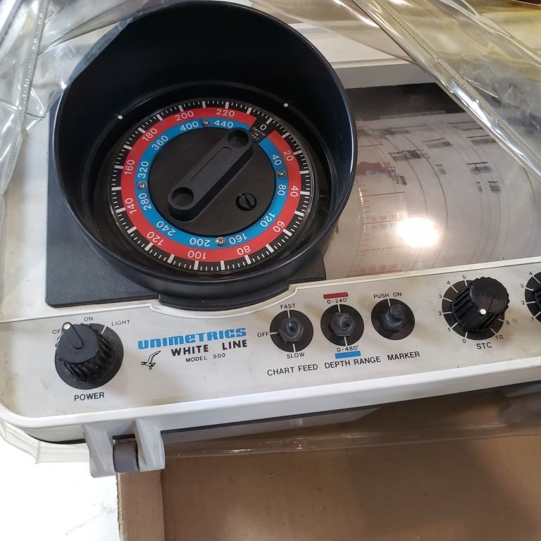 CORONET MARINE CB RADIO CDM-12VN AND UNIMETRICS WHITE LINE CHART FEED DEPTH AND RANGE MARKER MODEL 500