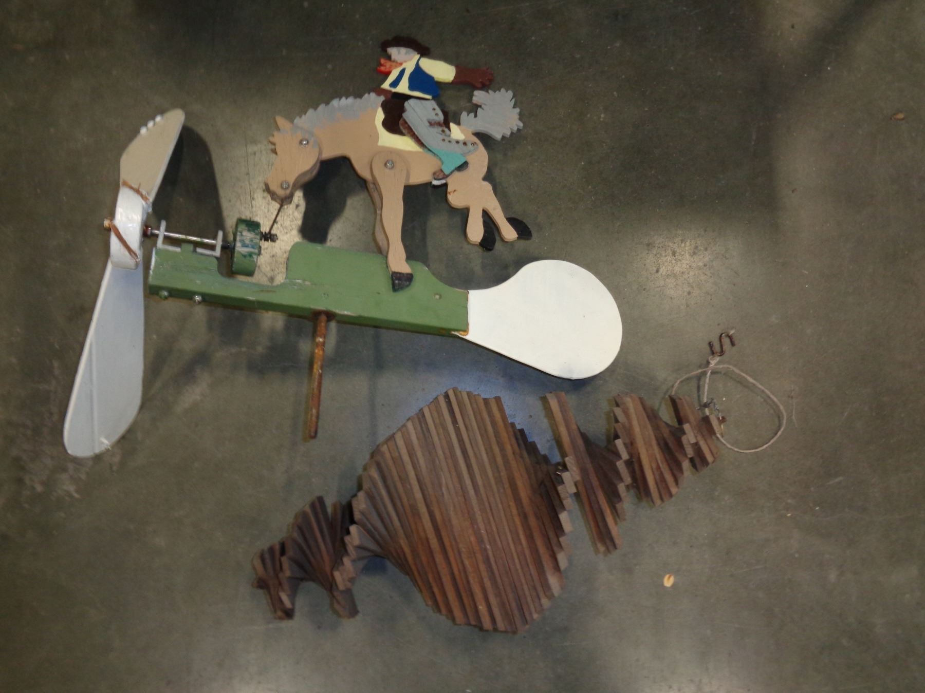 COWBOY INSPIRED WEATHERVANE AS IS AND WOOD SPINNER
