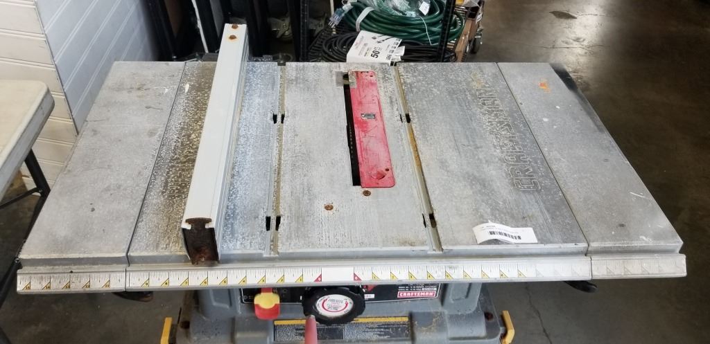 CRAFTSMAN 10 INCH TABLE SAW ON ROLLING STAND, WORKING