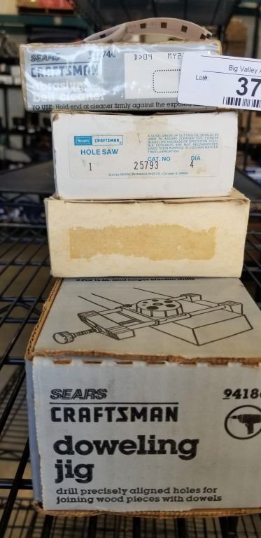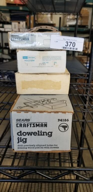 CRAFTSMAN DOWELING JIG, HOLE SAWS AND ABRASIVE BELT CLEANER IN ORIGINAL BOXES