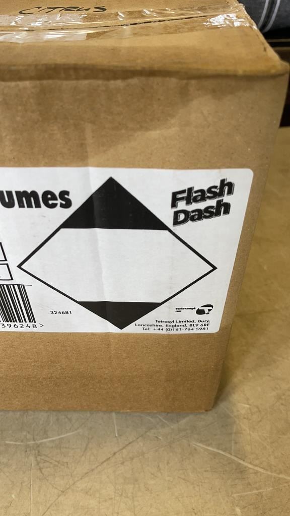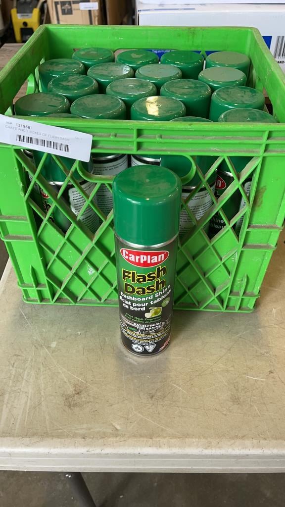 CRATE AND 2 BOXES OF FLASH DASH AEROSOL CLEANER
