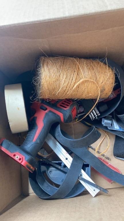 CRATE AND BOX OF AIR TOOLS AND POWER TOOL AS FOUND