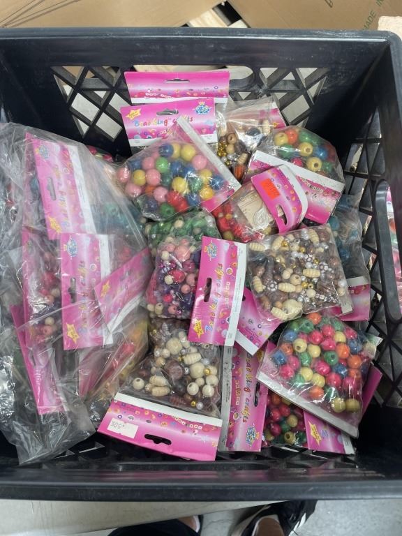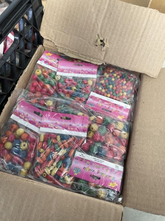 CRATE AND BOX OF NEW PACKS OF BEADS