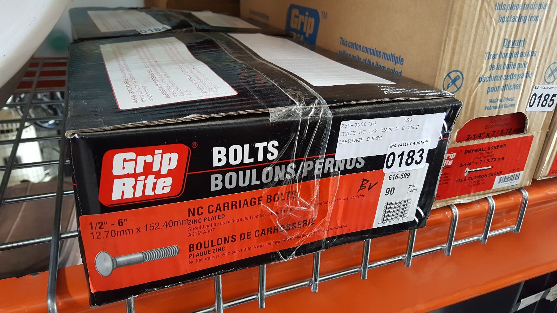 CRATE OF 1/2 INCH X 6 INCH CARRIAGE BOLTS