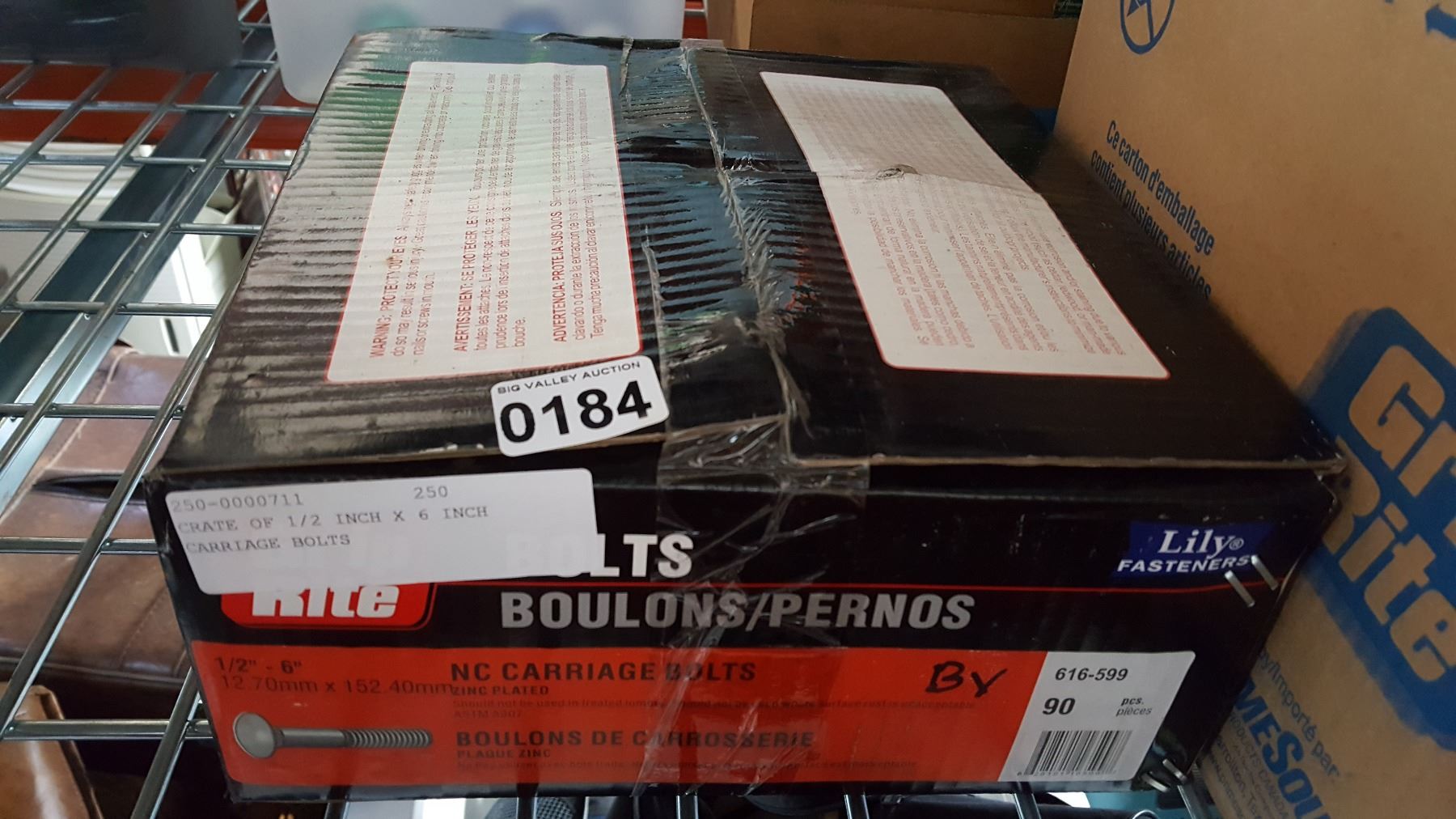 CRATE OF 1/2 INCH X 6 INCH CARRIAGE BOLTS