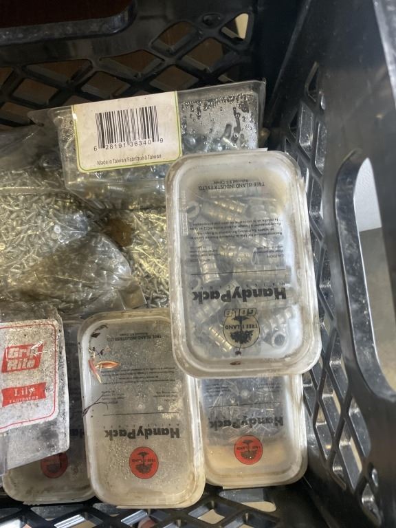 CRATE OF ASSORTED HARDWARE, SCREWS ETC