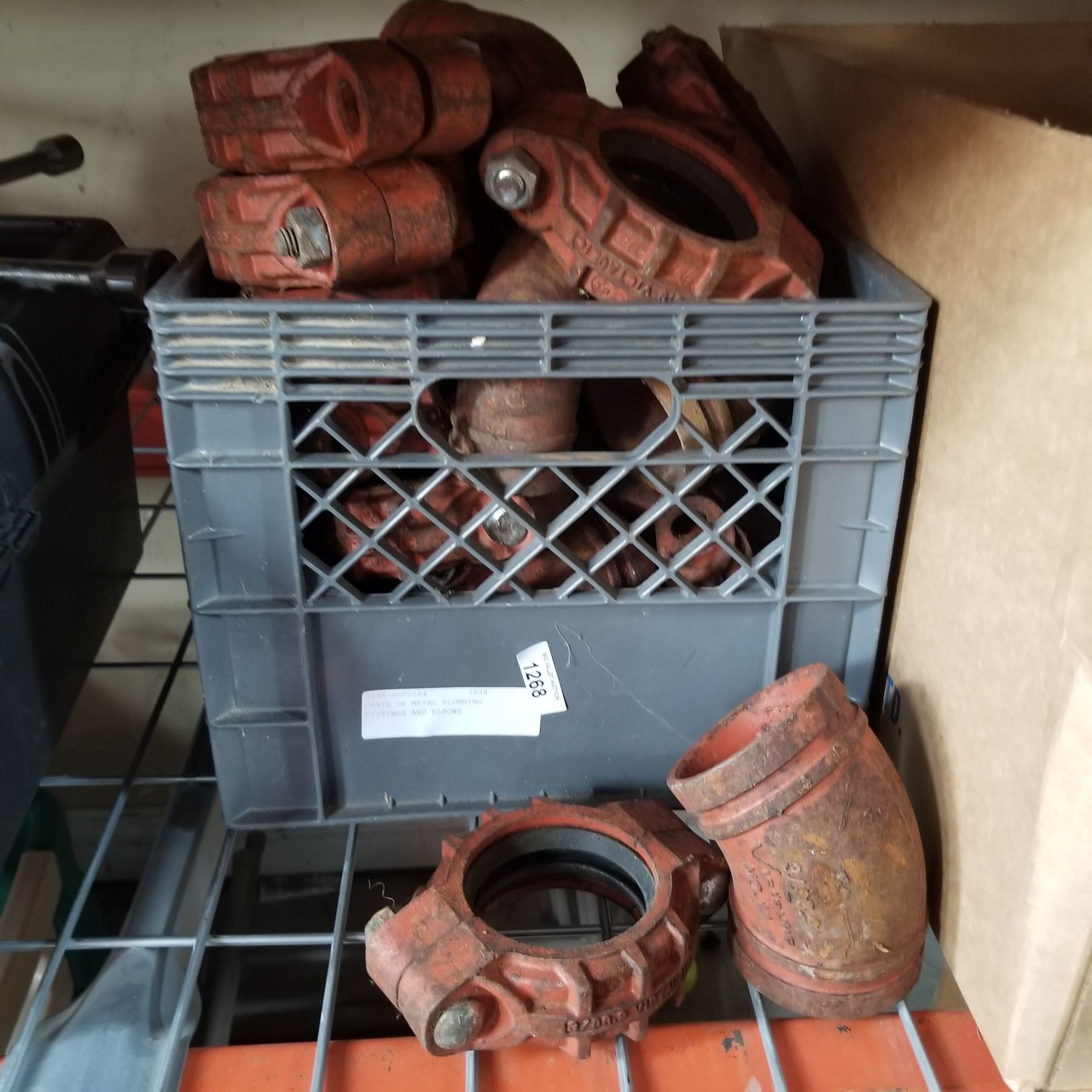 CRATE OF METAL PLUMBING FITTINGS AND ELBOWS