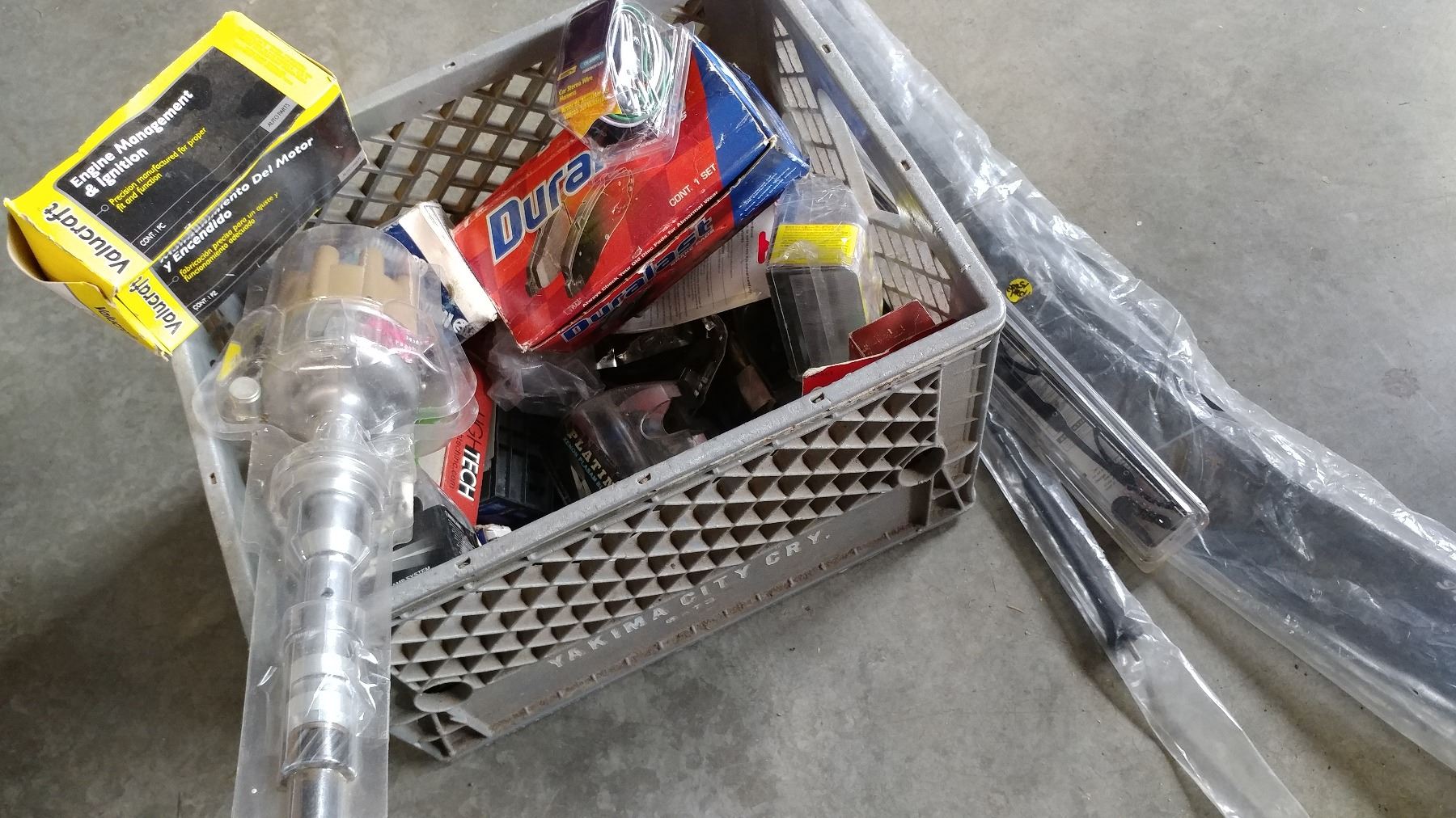 CRATE OF NEW AUTO PARTS