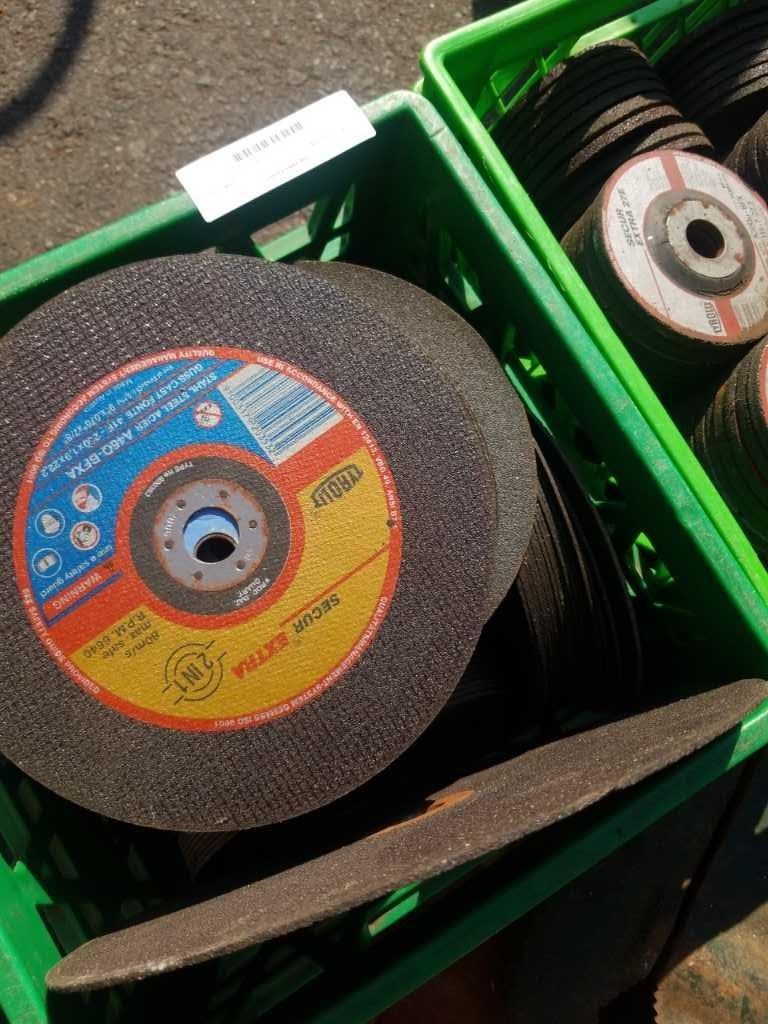 CRATE OF VARIOUS SIZE CUT OFF BLADES