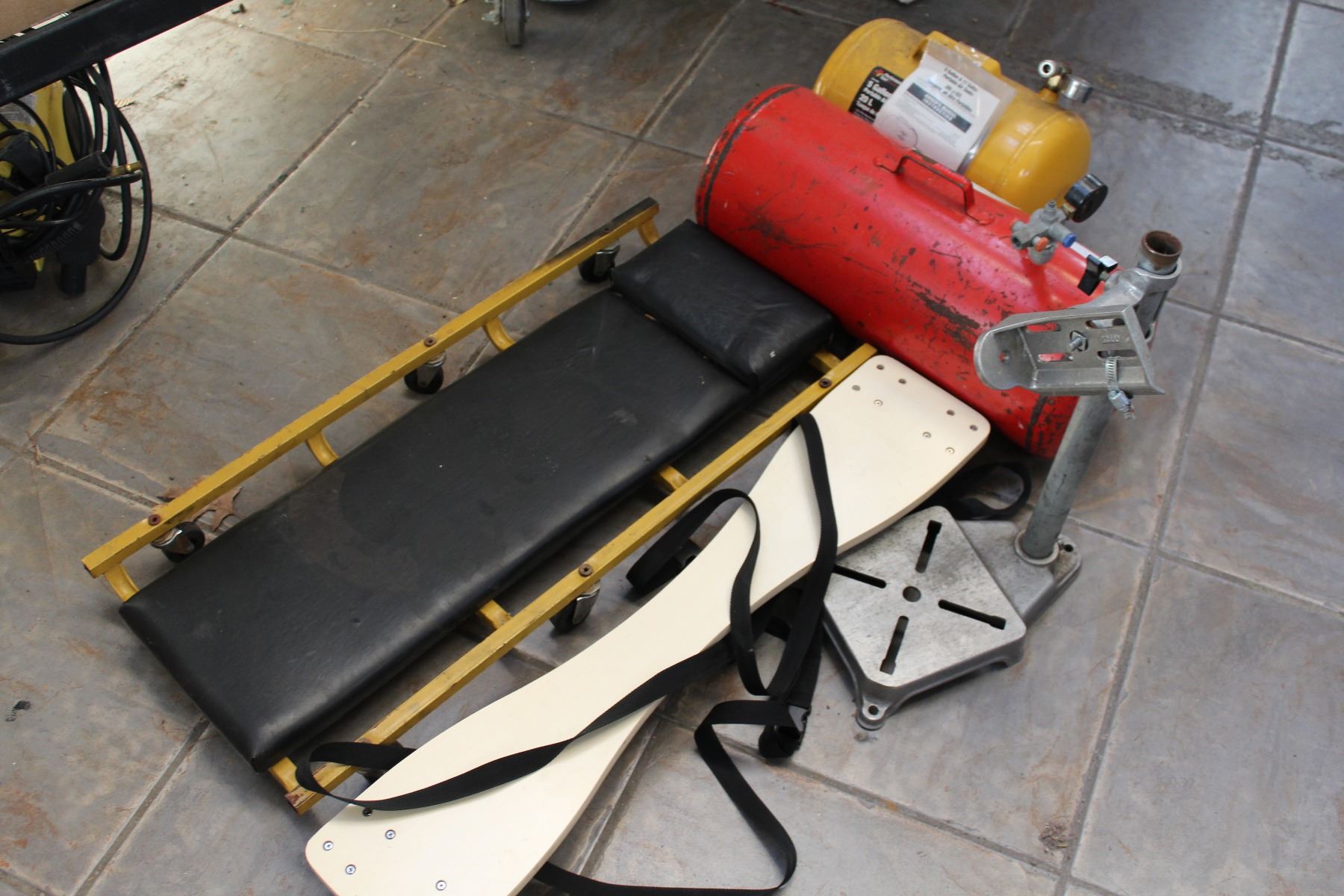 CREEPER DOLLY DRILL PRESS STAND AND AIR TANKS