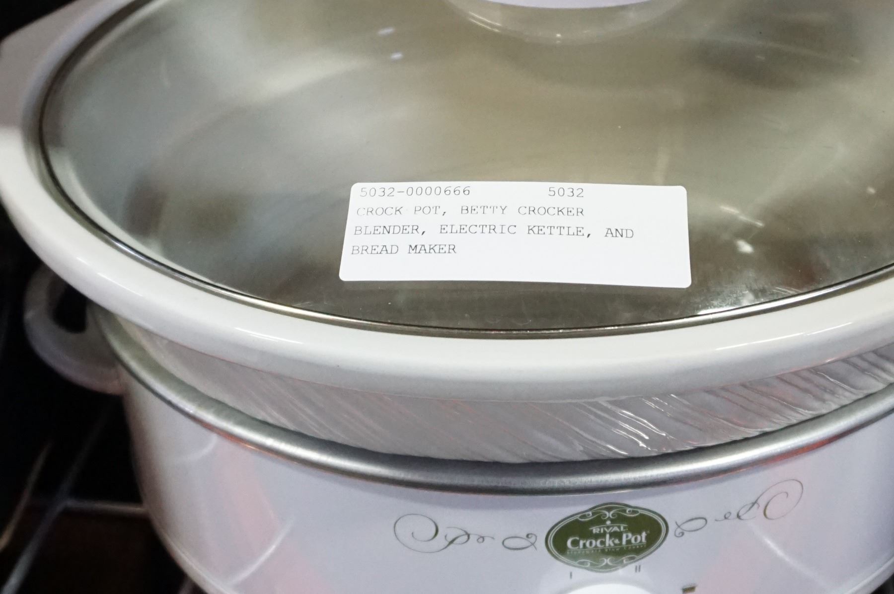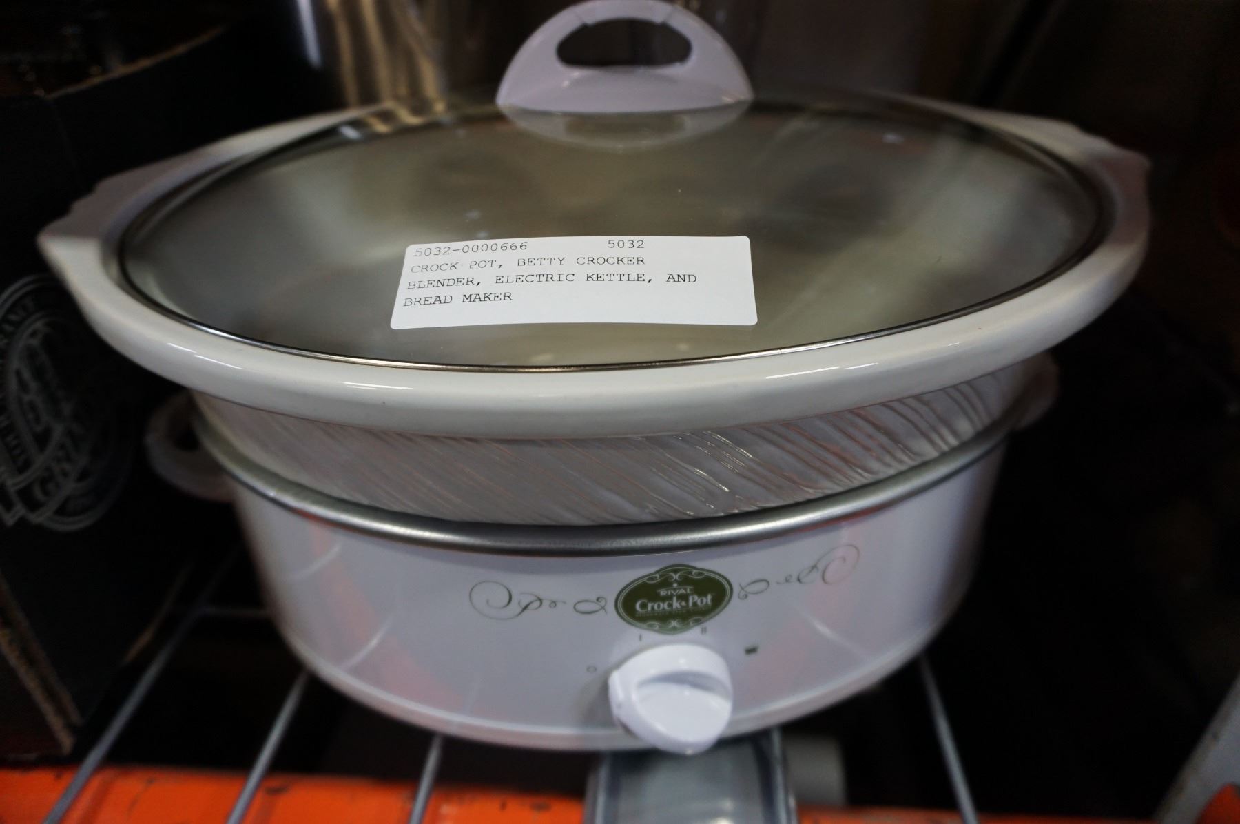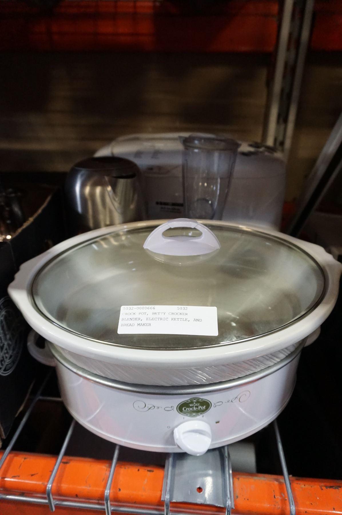 CROCK POT, BETTY CROCKER BLENDER, ELECTRIC KETTLE, AND BREAD MAKER