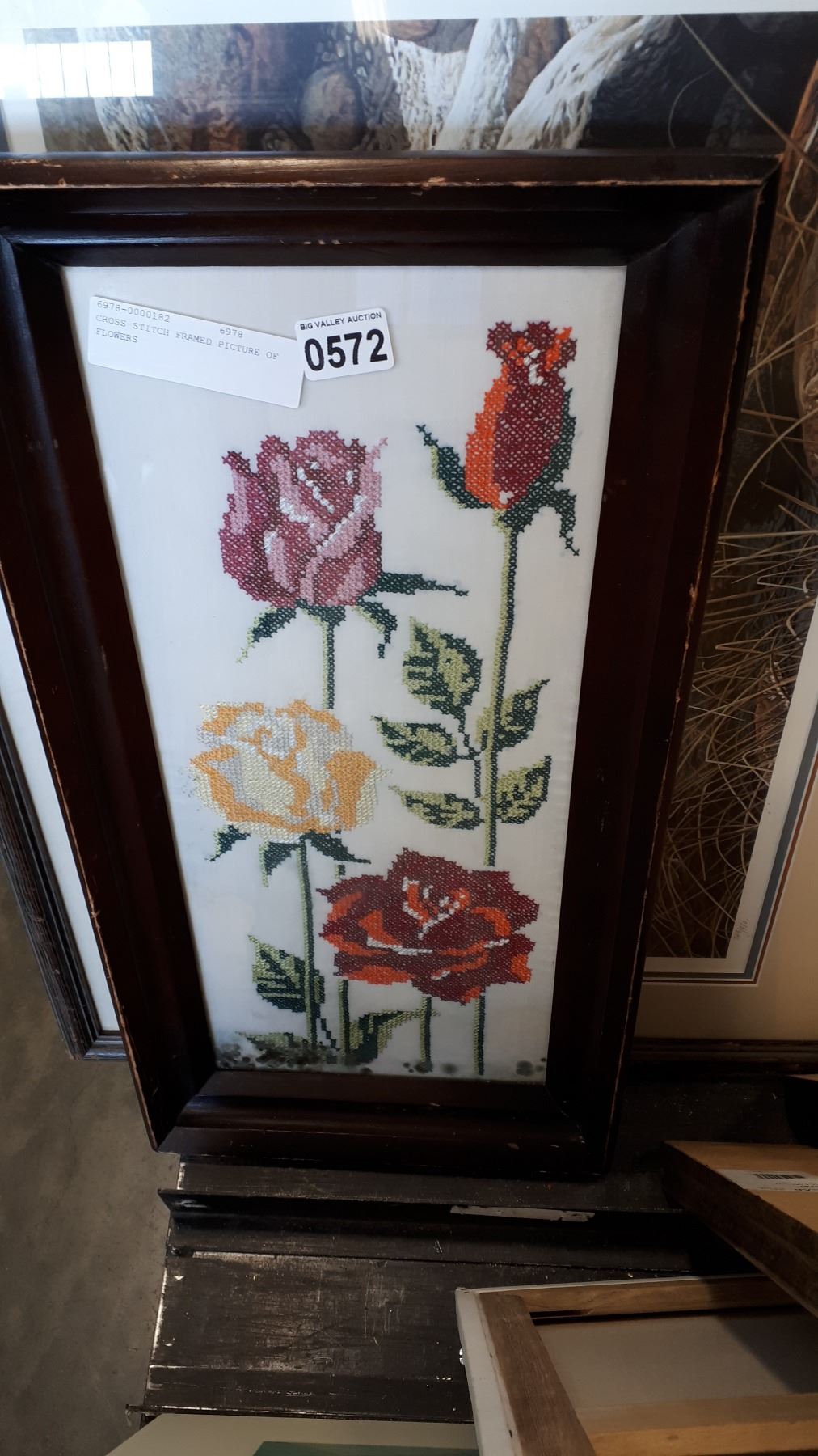 CROSS STITCH FRAMED PICTURE OF FLOWERS