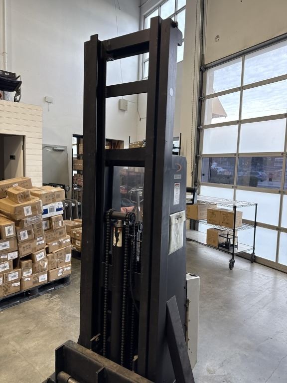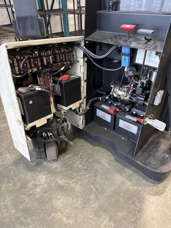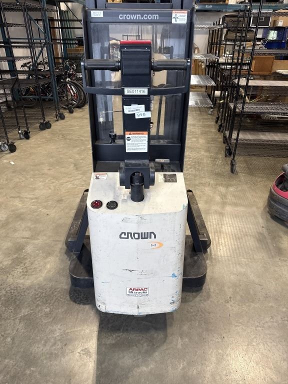 CROWN ELECTRIC ORDER PICKER PALLET STACKER, MODEL 20MT, IN WORKING ORDER, WITH MANUALS, GOOD BATTERIES, NO CHARGER