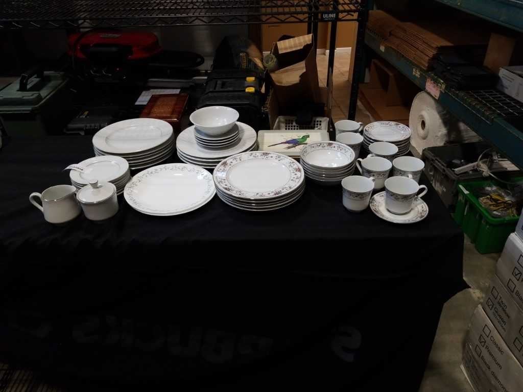 CROWN VICTORIA LOVELACE CHINA DISHES, CREAM AND SUGAR AND CLAIRMONT DISHES, CUPS AND SAUCERS AND OTHER PLATES