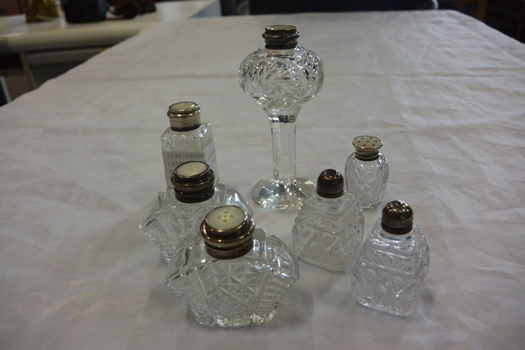CRYSTAL AND STERLING WITH MOTHER OF PERAL TOPS SALT AND PEPPERS