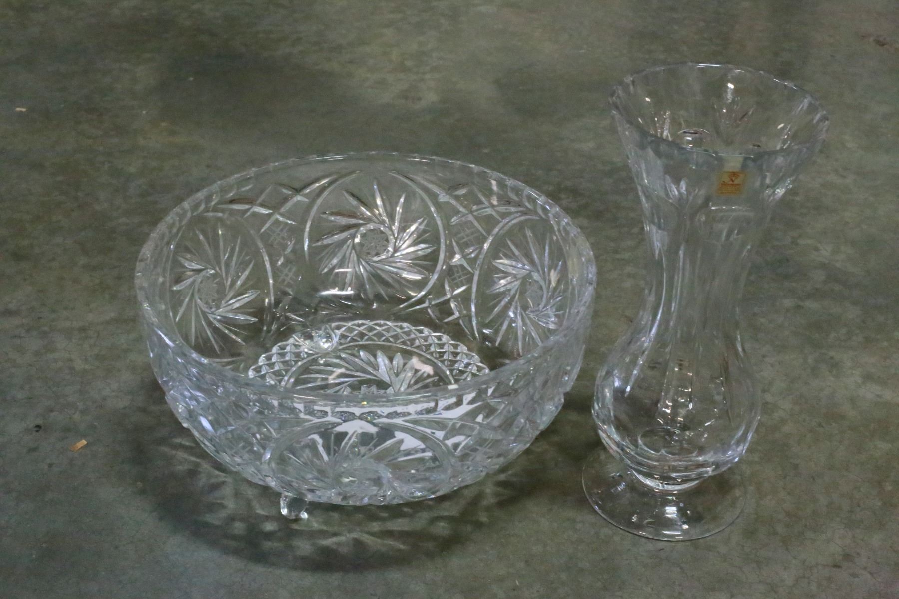 CRYSTAL BOWL AND PEDESTLE AND CRYSTAL VASE