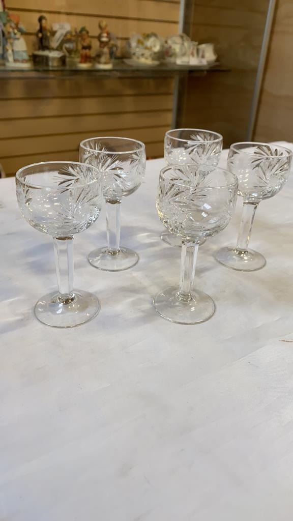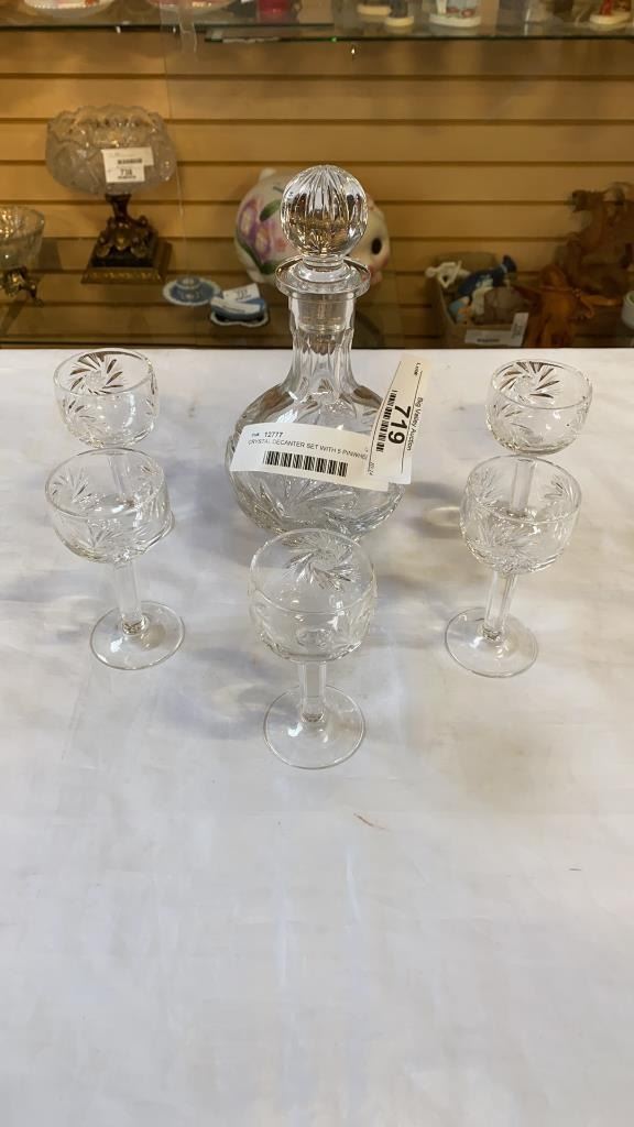 CRYSTAL DECANTER SET WITH 5 PINWHEEL GLASSES