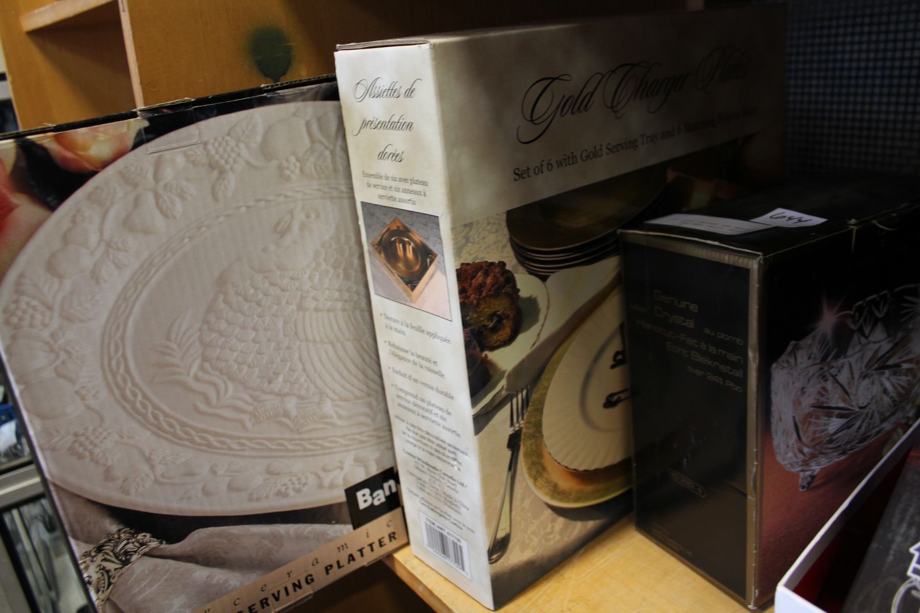 CRYSTAL FOOTED BOWL AND PLATTER AND CHARGER PLATE SET