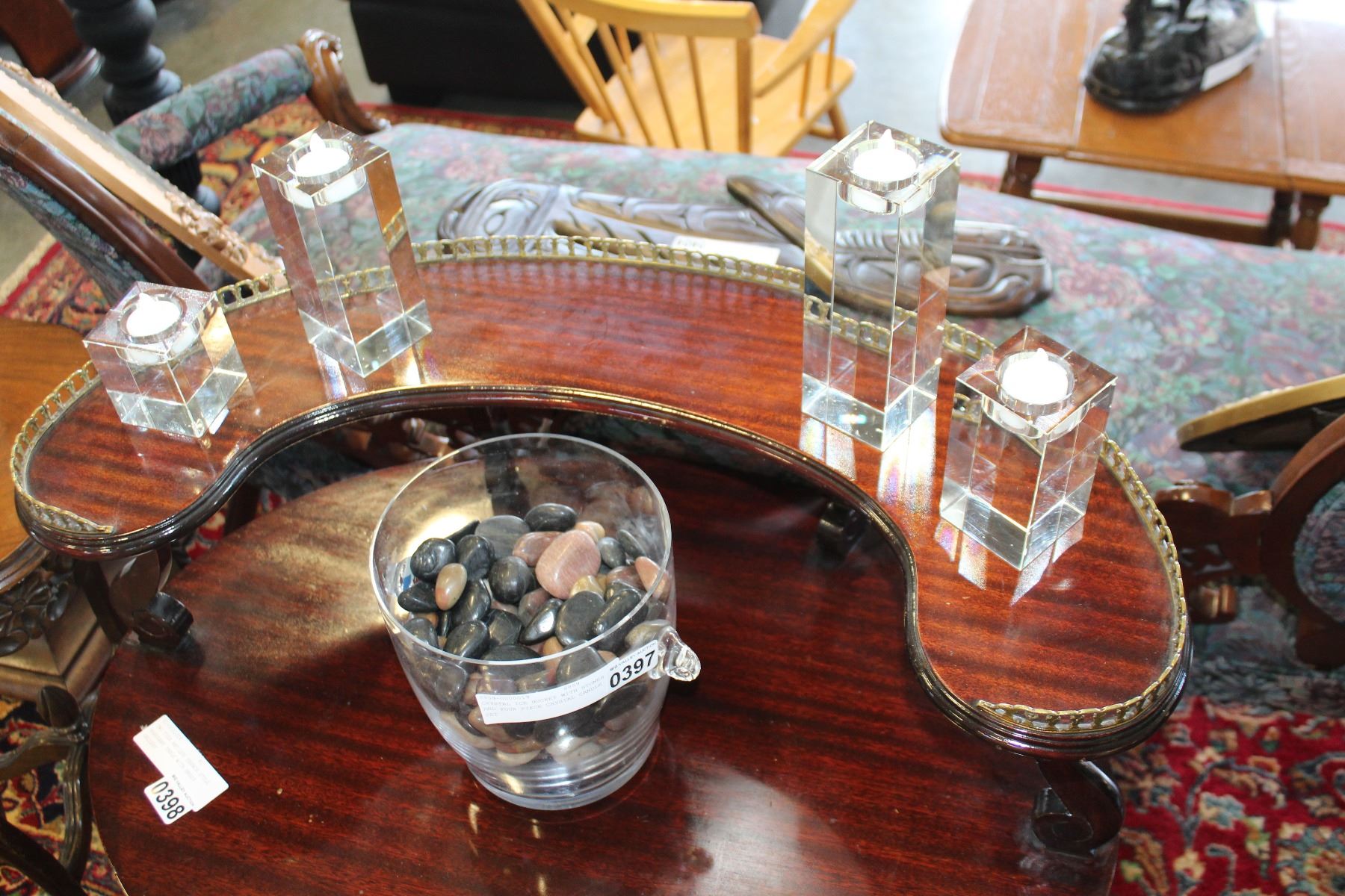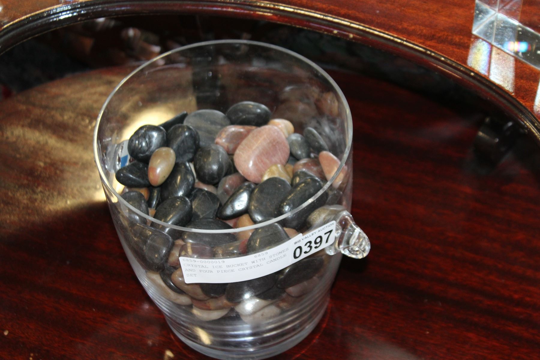 CRYSTAL ICE BUCKET WITH STONES AND FOUR PIECE CRYSTAL CANDLE SET