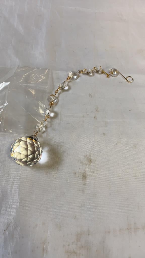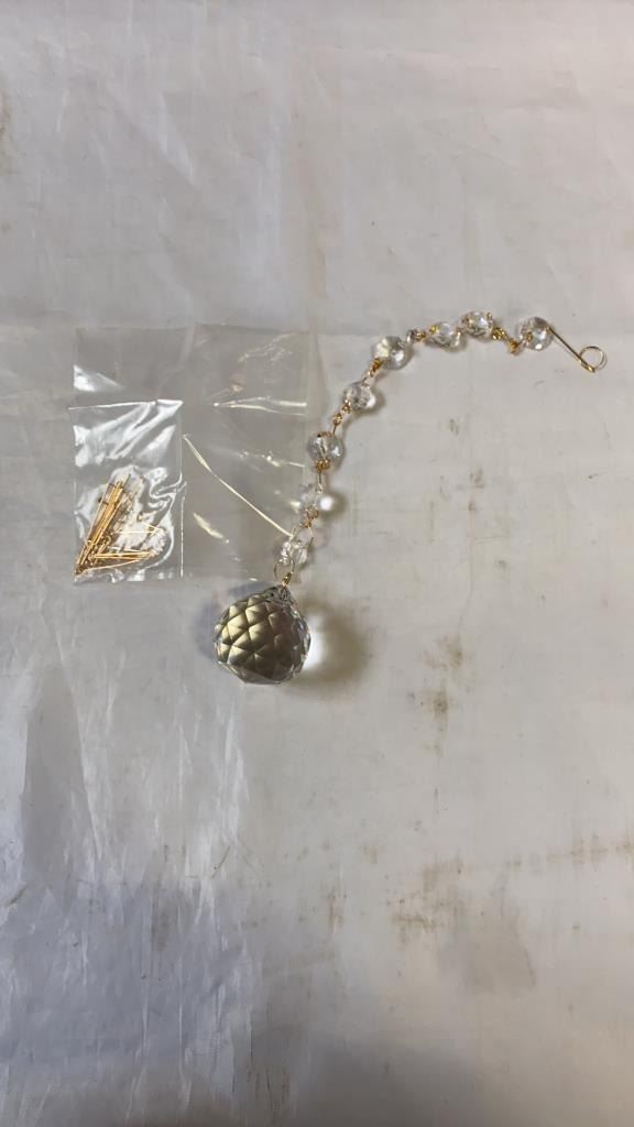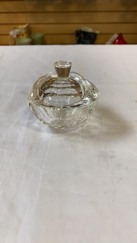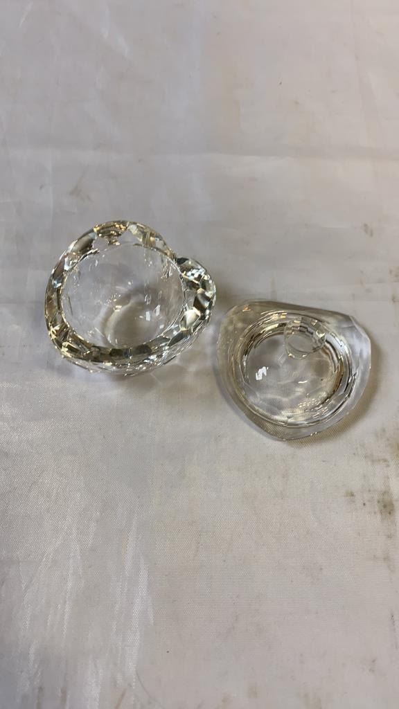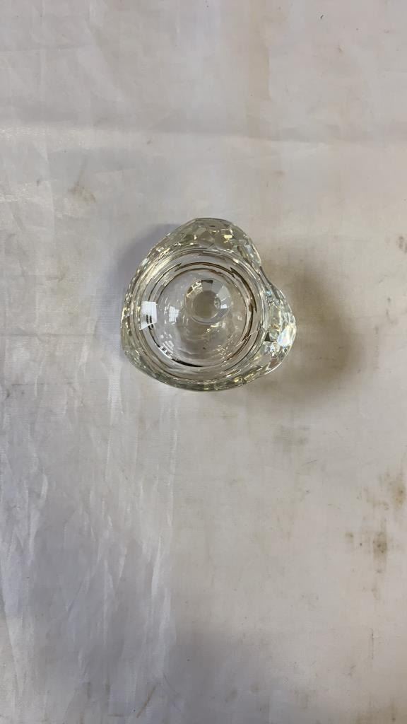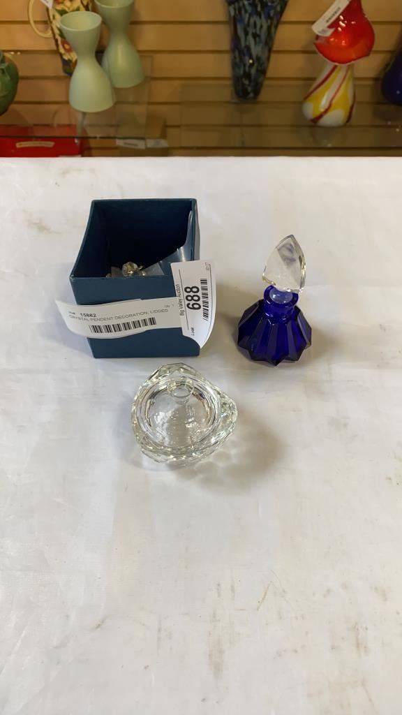 CRYSTAL PENDENT DECORATION, LIDDED HEART DISH AND PERFUME BOTTLE