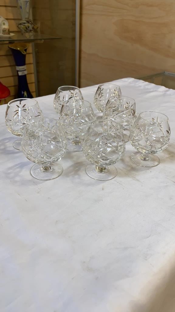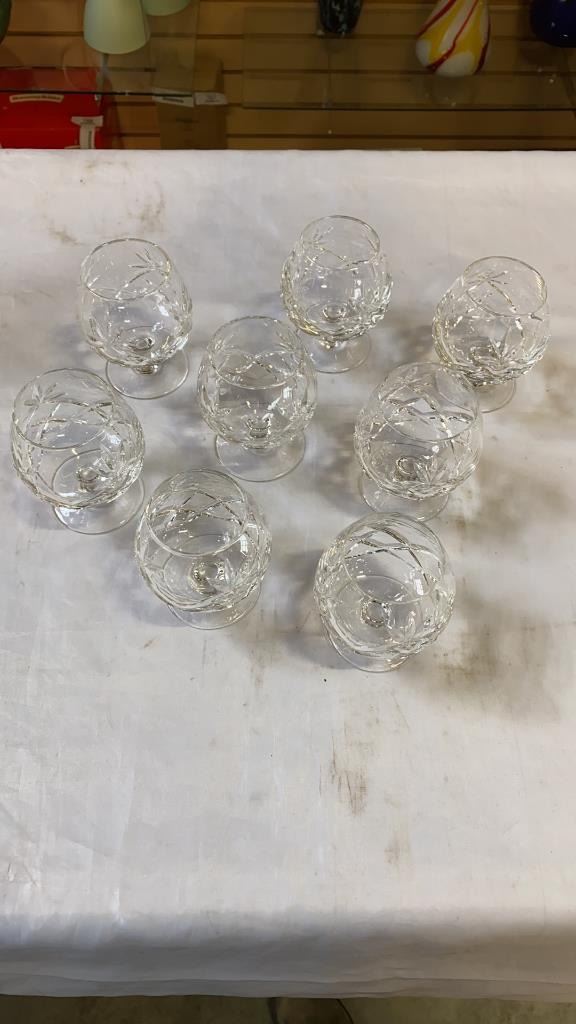 CRYSTAL SHIP DECANTER AND 8 CRYSTAL GLASSES