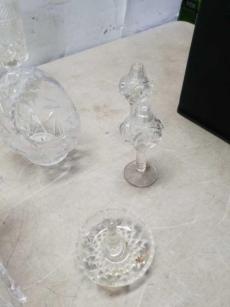 CRYSTAL VASE, BASKET, DISH AND GLASSES