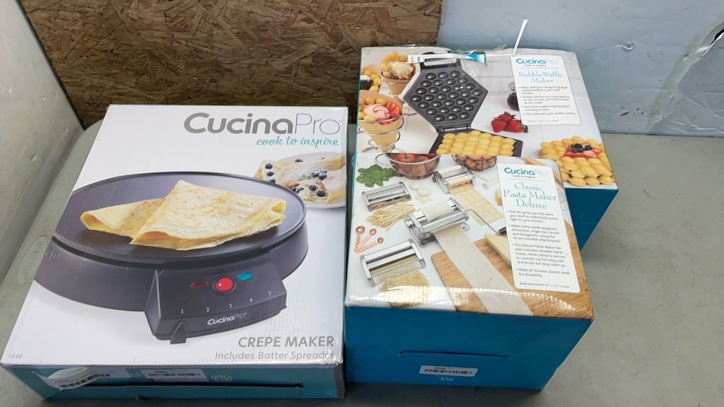 CUCINA PRO PASTA MAKER DELUXE, CREPE MAKER AND BUBBLE WAFFLE MAKER