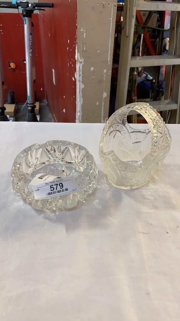 CUT PRESSED CRYSTAL BASKET AND CRYSTAL ASH TRAY