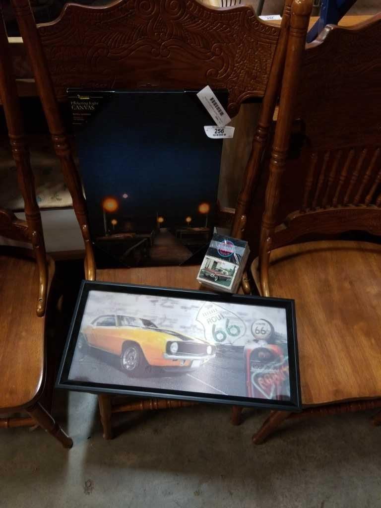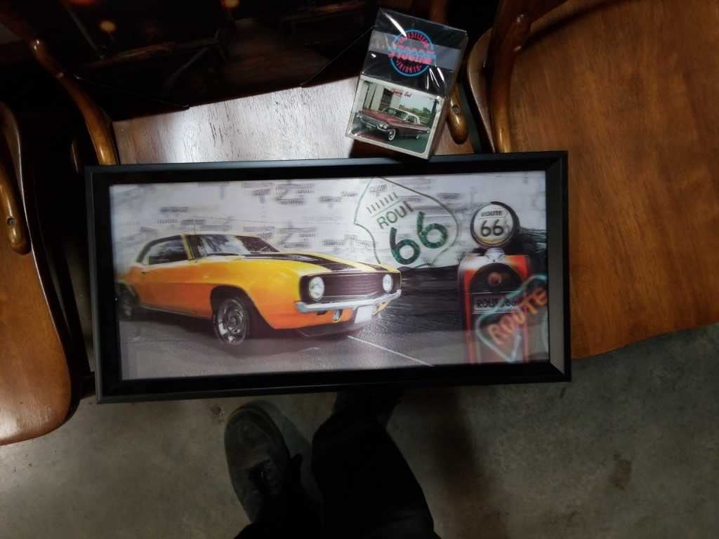 Canvas print, route 66 holographic and vehicle trading cards muscle and corvette