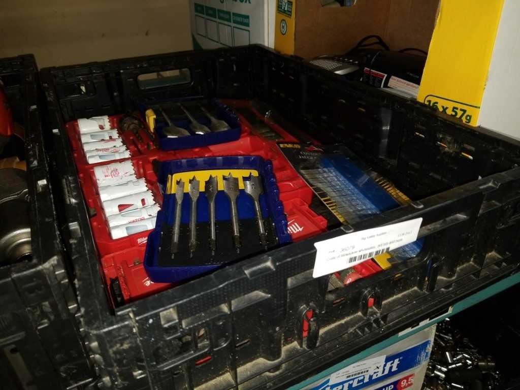 Crate of Milwaukee wholesales, drill bits and more