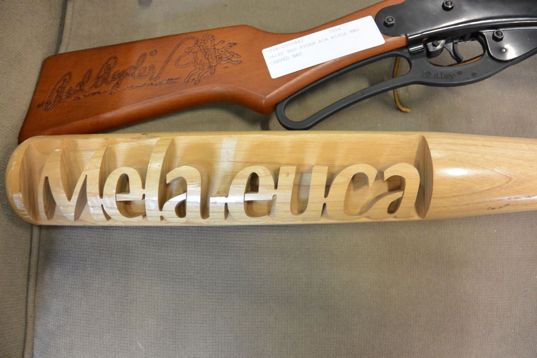 DAISY RED RYDER AIR RIFLE AND CARVED BAT