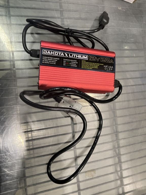 DAKOTA LITHIUM Ultra Fast 12V 20A Waterproof Lithium LiFePO4 Onboard Battery Charger RETAIL $205 USD Ultra Fast Charging for 12 volt Dakota Lithium batteries 20 amp LiFePO4 charger for fast charging of larger batteries. Optimal for Dakota Lithium 54Ah, 100Ah, and 170Ah batteries. All 12 volt Dakota Lithium batteries should be charged using a LiFePO4 compatible charger.