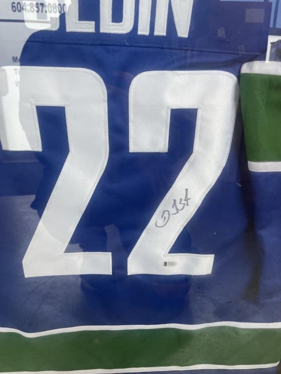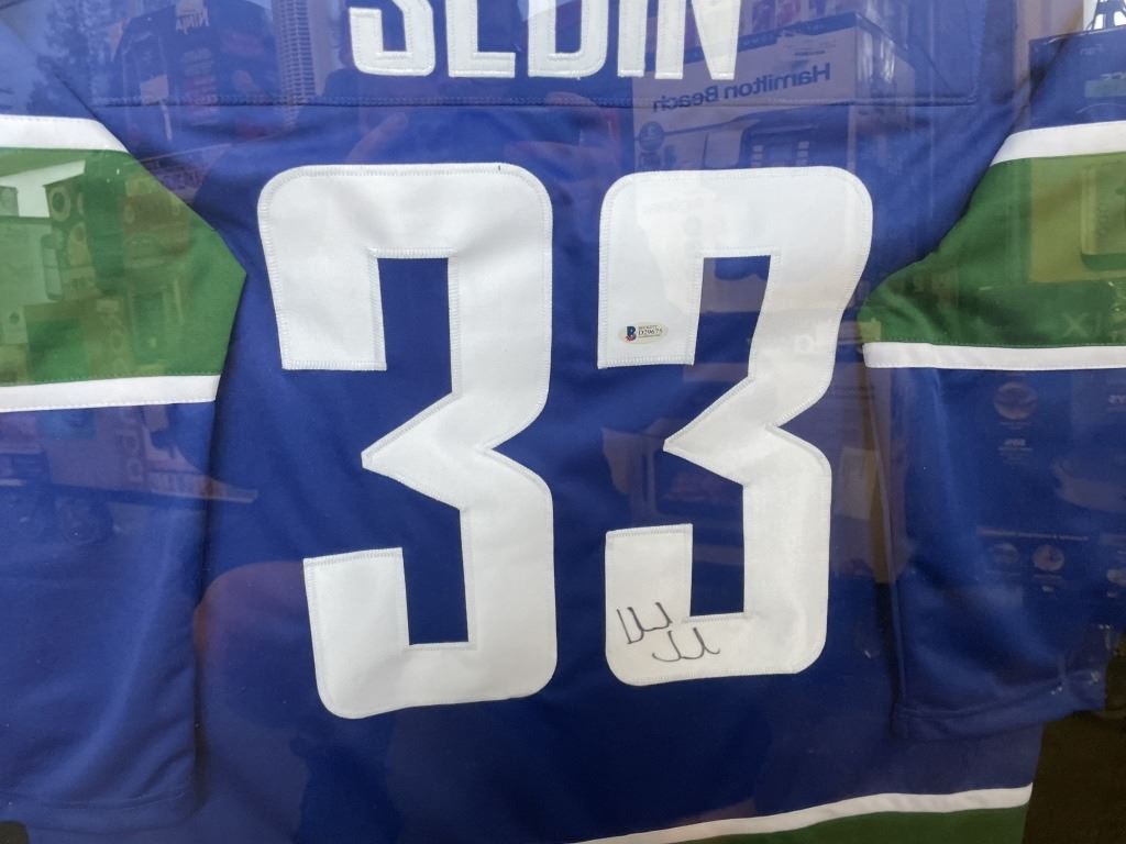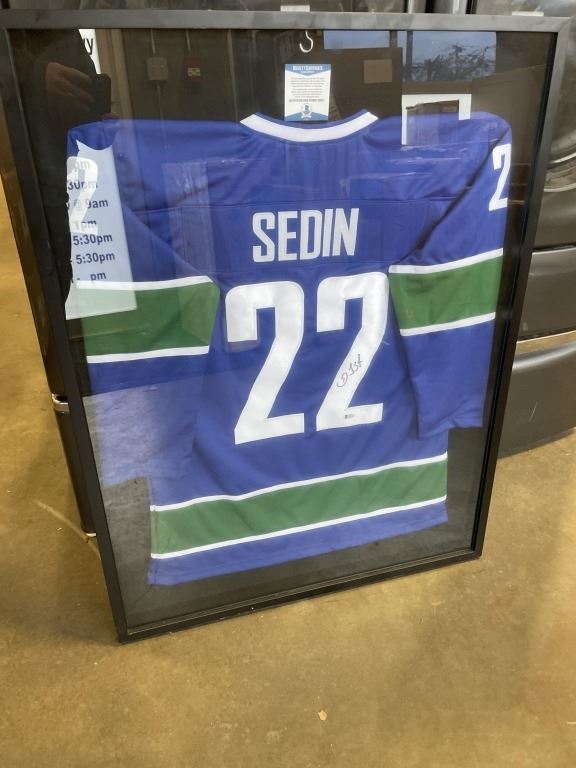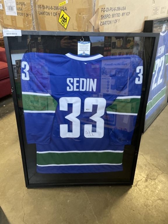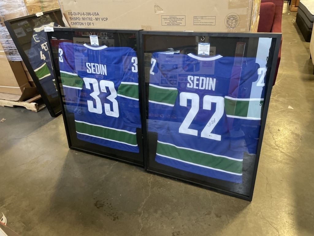 DANIEL AND HENDRICK SEDIN AUTOGRAPHED CANUCKS JERSEYS WITH BECKETT COA IN SHADOW BOX DISPLAY CASES